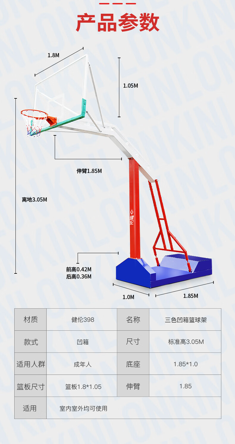 健伦(JEEANLEAN)JLAA106篮球架 标准成人户外移动 梯式凹箱篮球架(包安装) 自营
