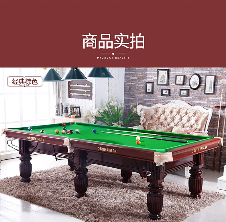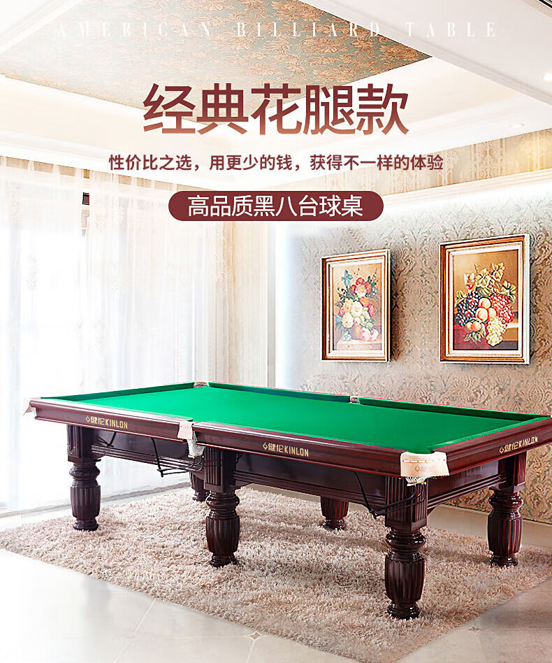 健伦台球桌标准成人8球家用桌球桌黑八九尺台球桌 尊享版JLAB101 自营