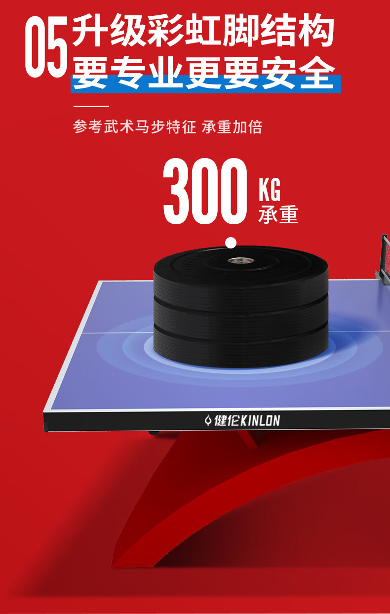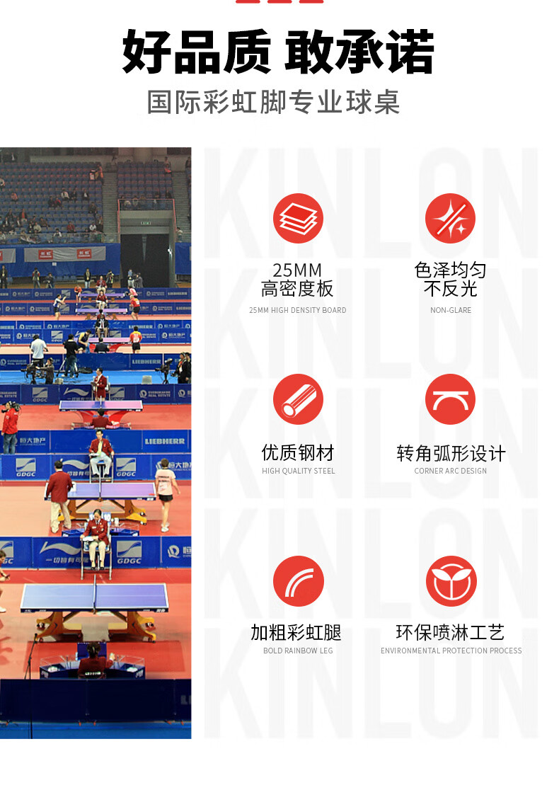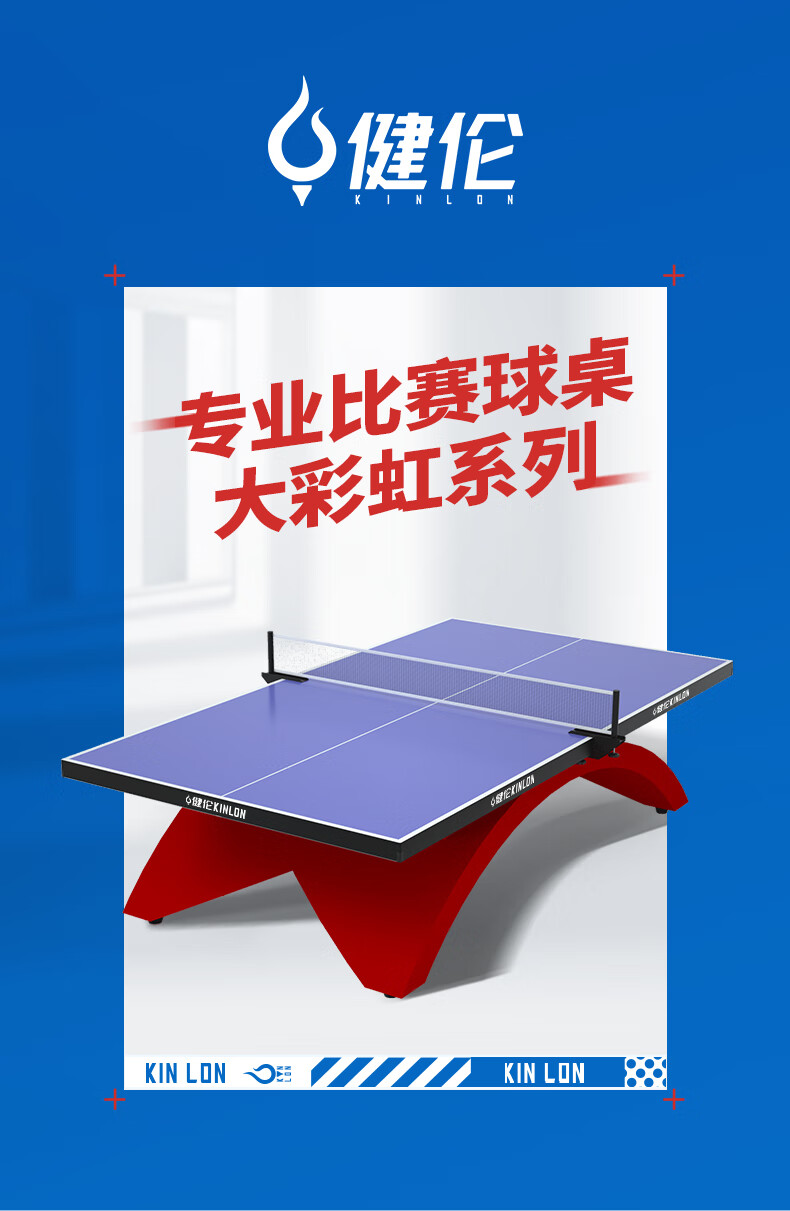 健伦彩虹腿赛事级乒乓球桌专业比赛球台25MM厚面板JLAC108 自营