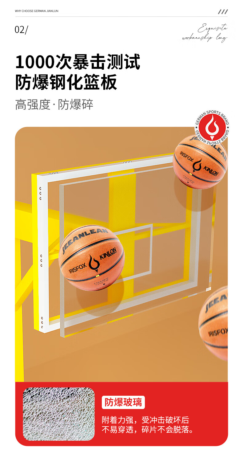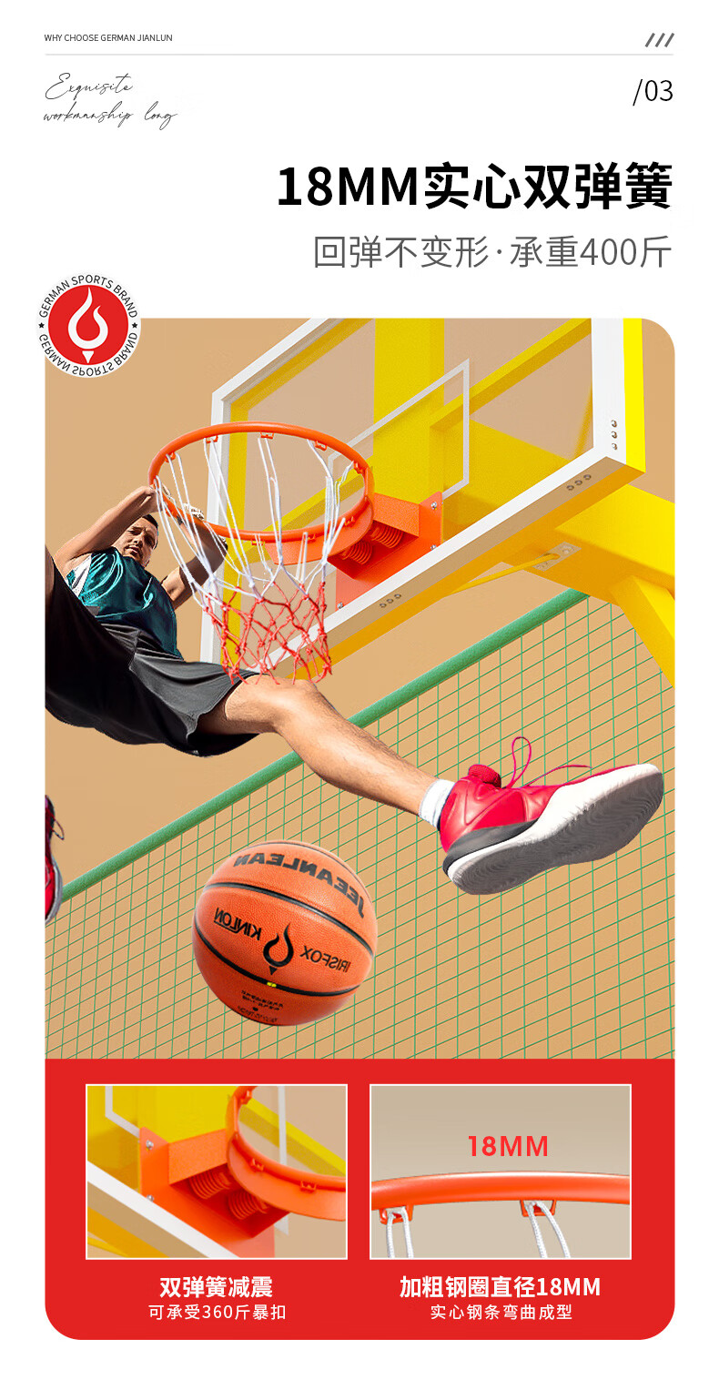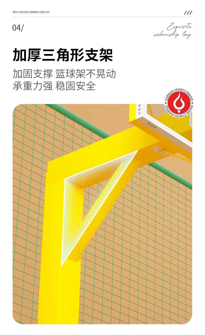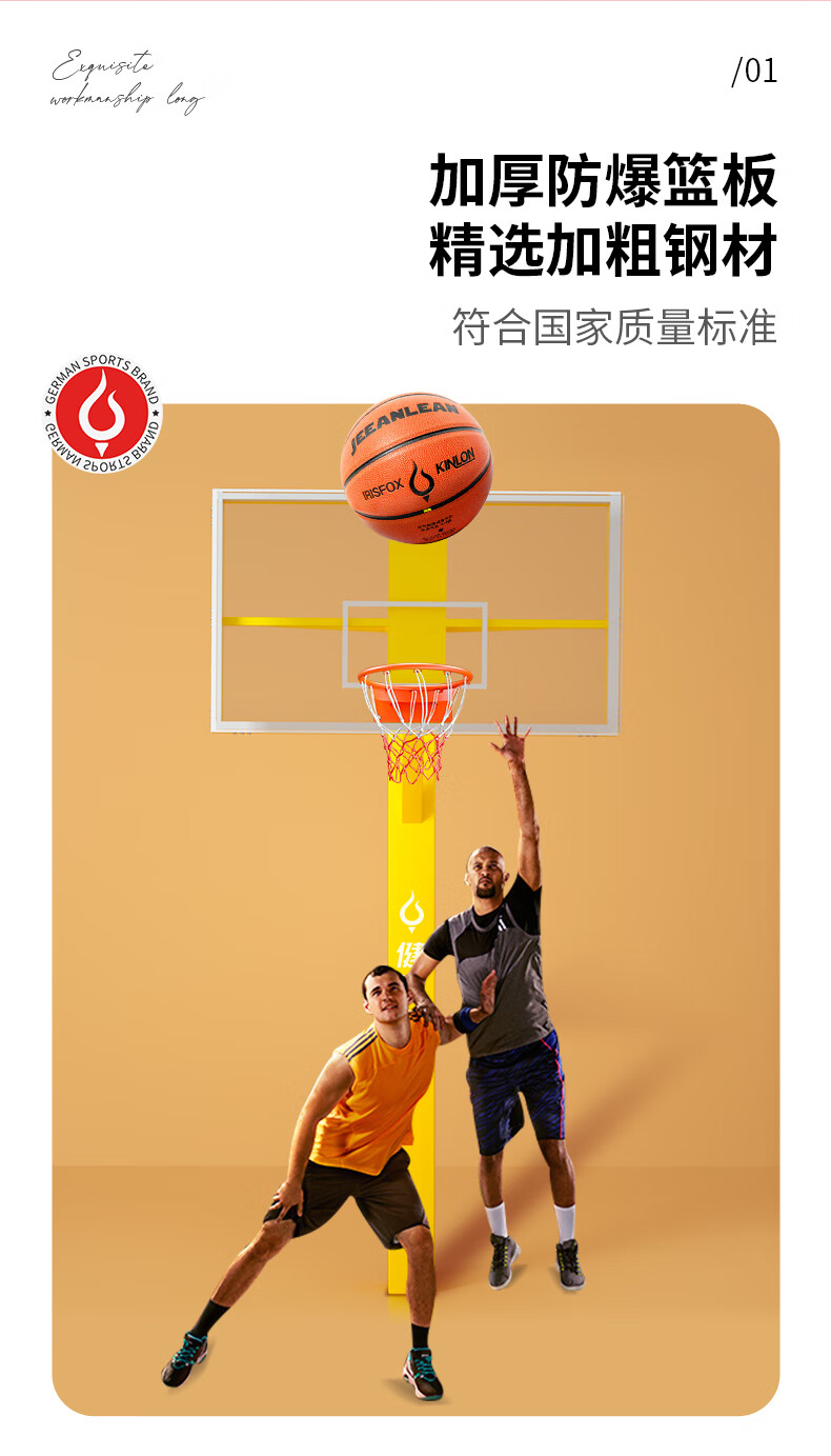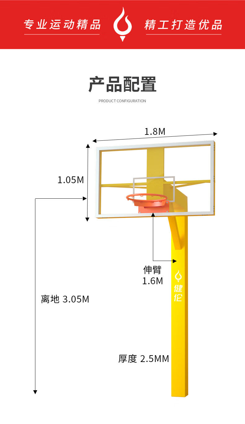 健伦(JEEANLEAN)JLAA179篮球架 标准成人户外地埋篮球架黄色 自营