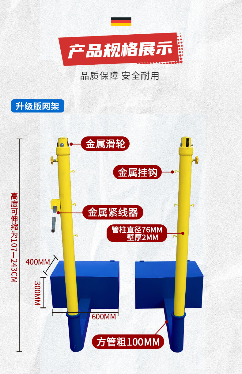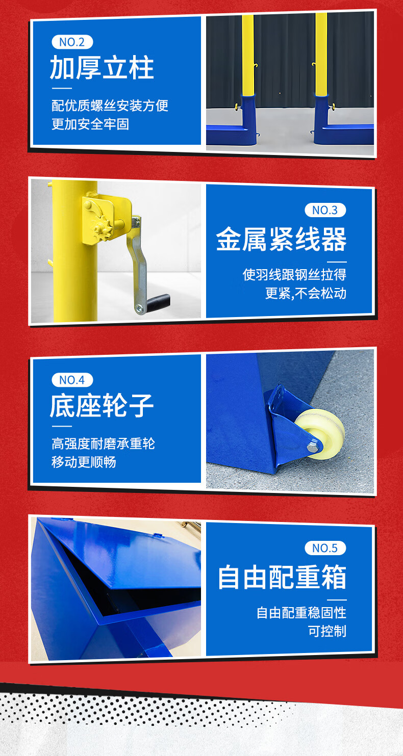 健伦 羽毛球网架排球柱学校比赛专用 多功能排球柱升降可移动 包球网 自营