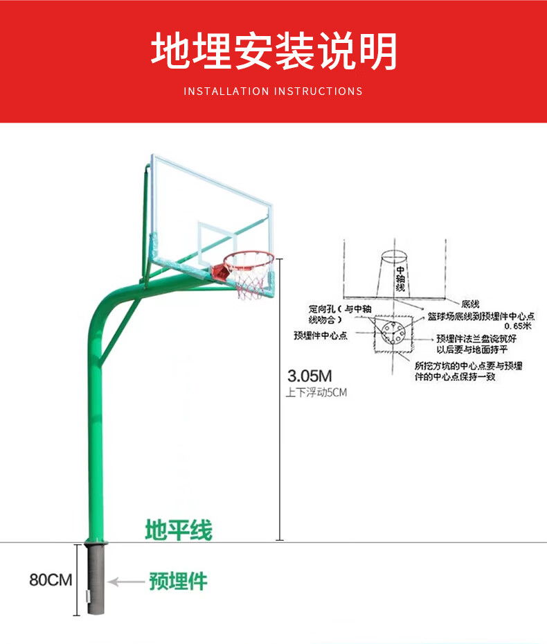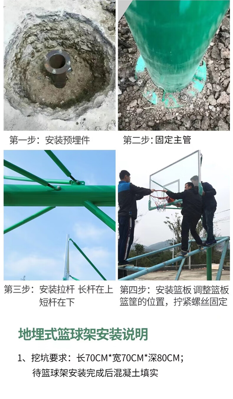 健伦(JEEANLEAN)JLAA119篮球架 标准成人户外移动地埋式篮球架 绿色圆管 自营