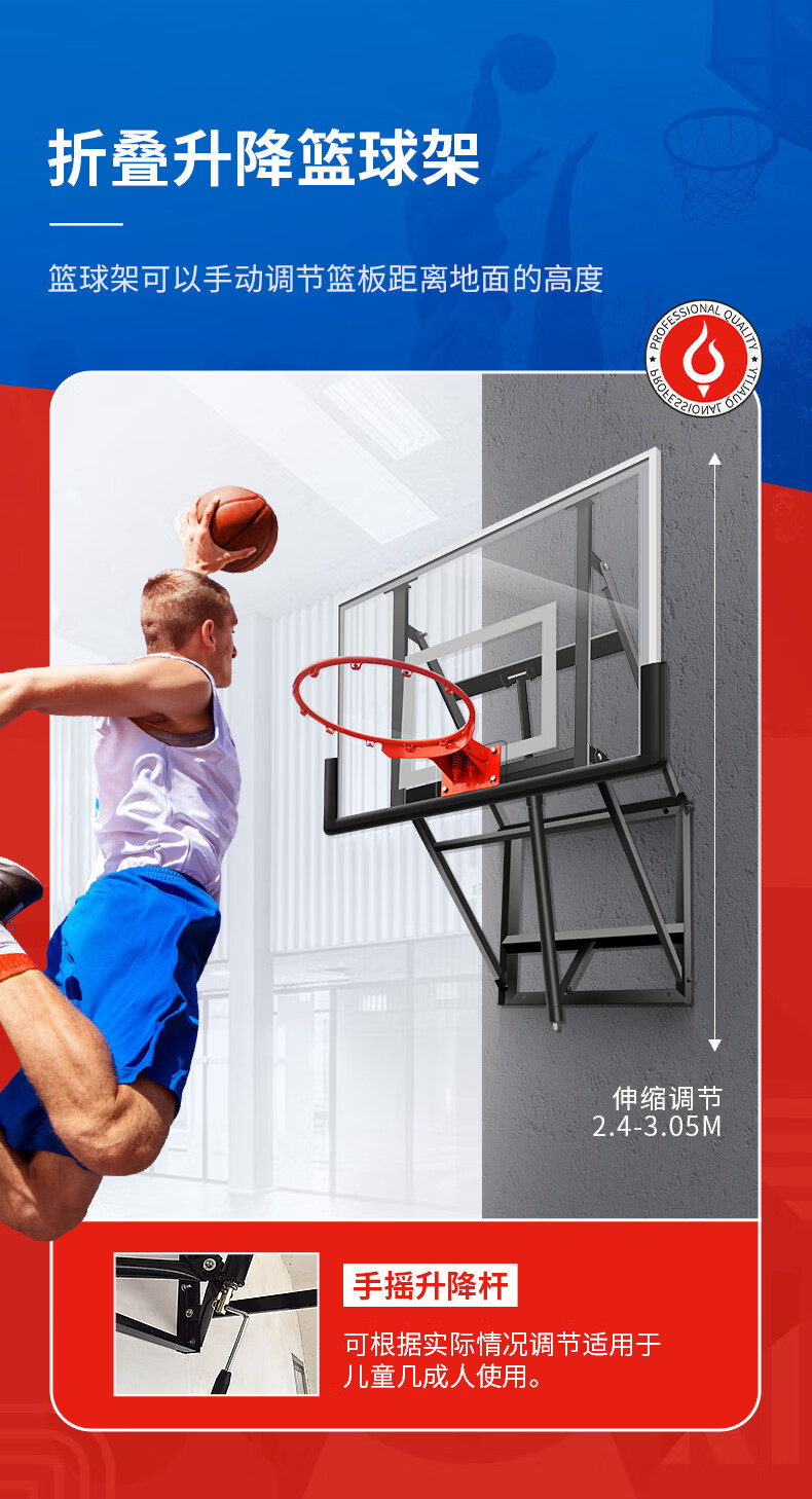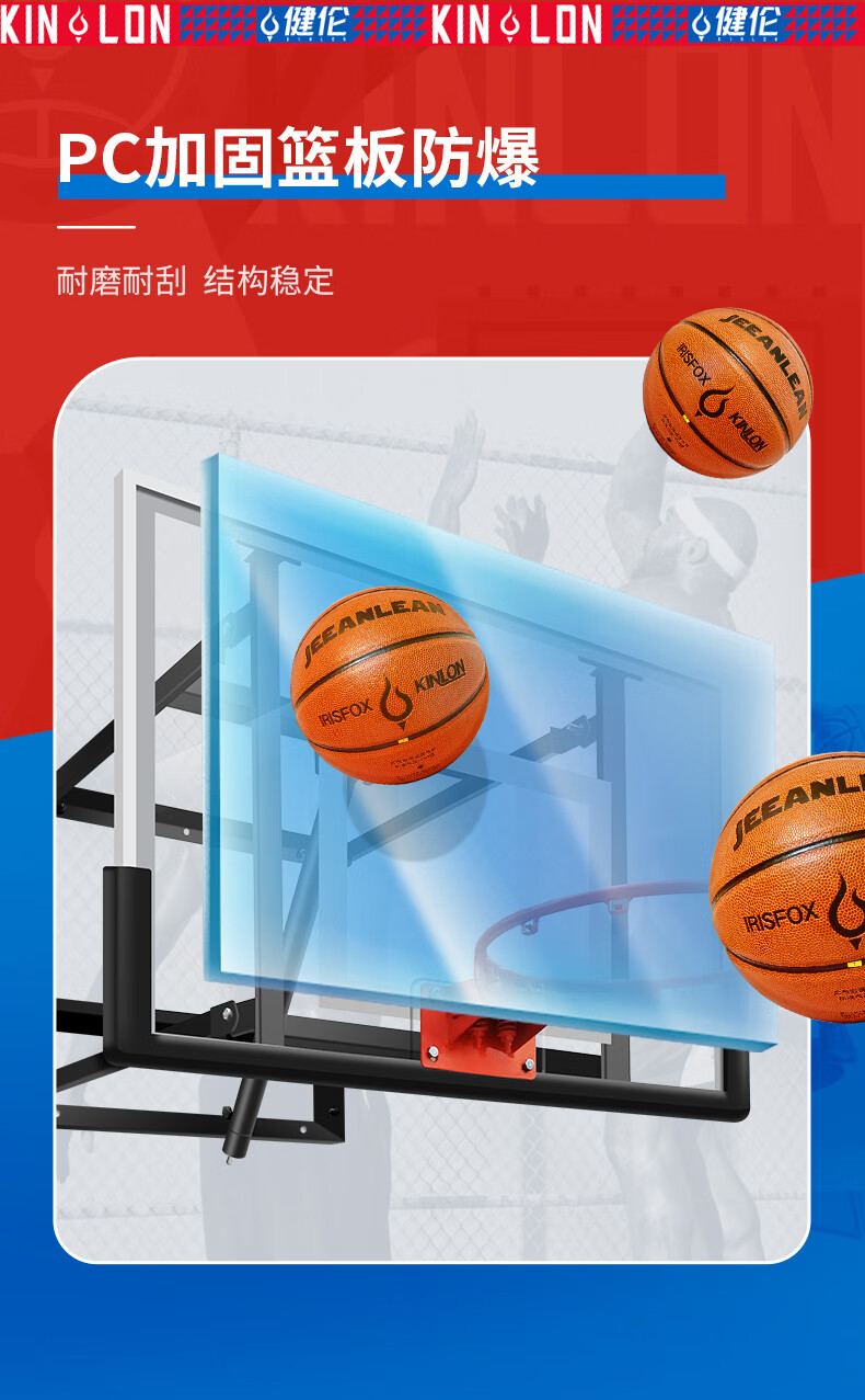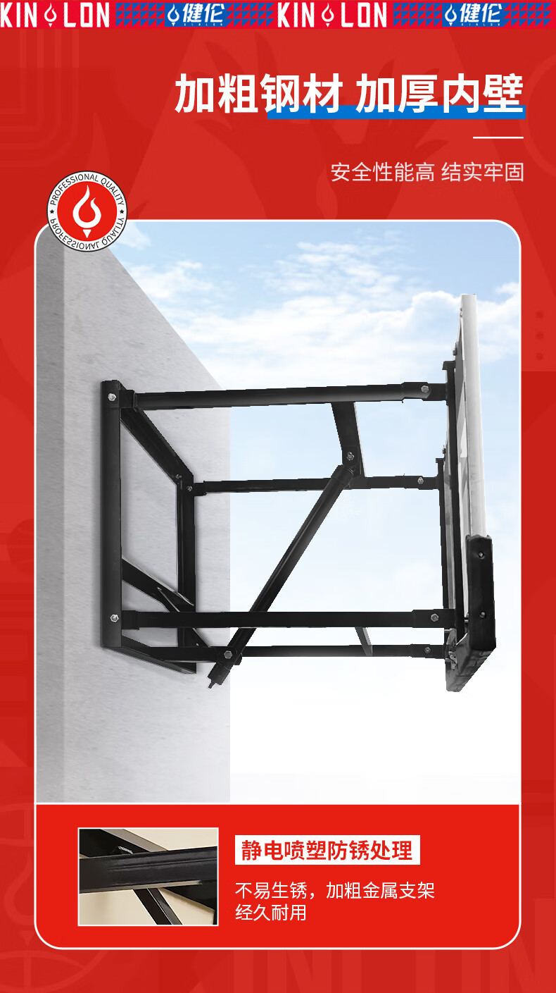 健伦(JEEANLEAN)JL-WMB01标准壁挂式篮球架培训成人青少年学校训练营球馆升降篮板 自营