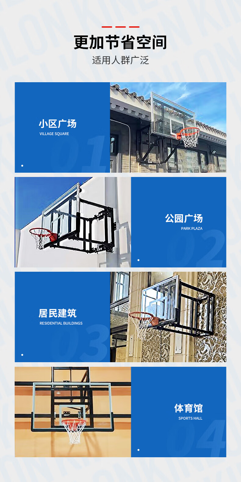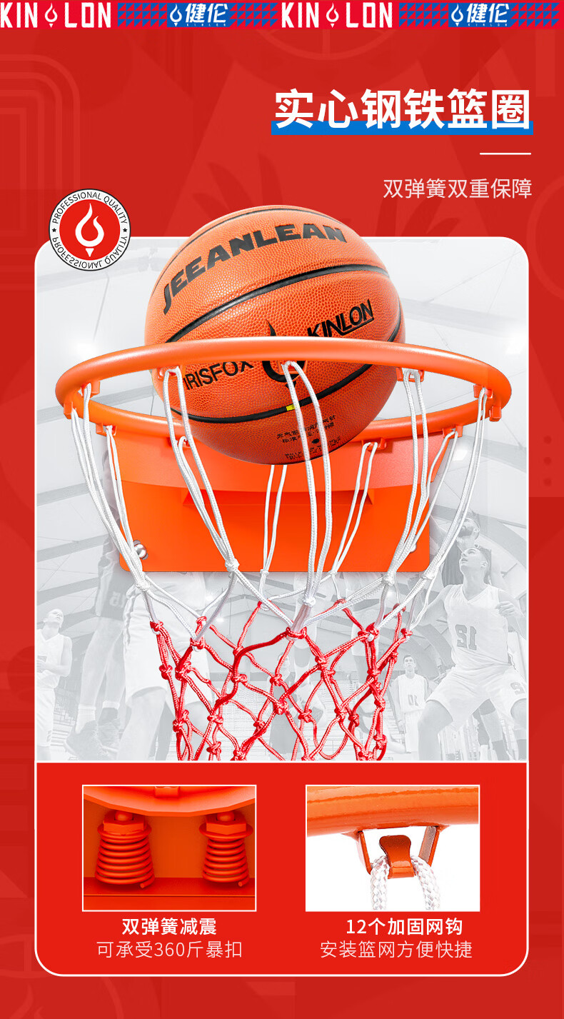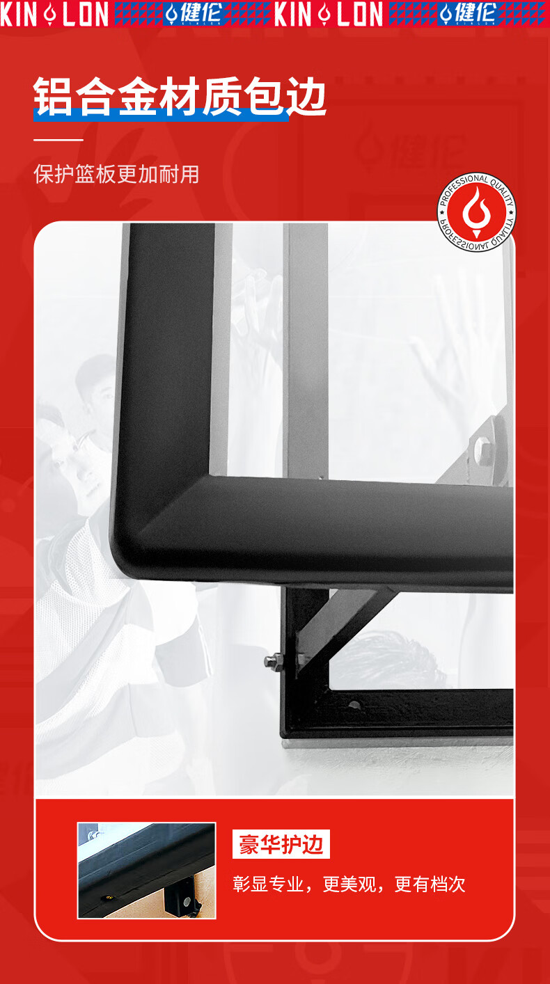 健伦(JEEANLEAN)JL-WMB01标准壁挂式篮球架培训成人青少年学校训练营球馆升降篮板 自营