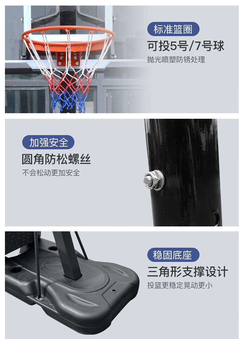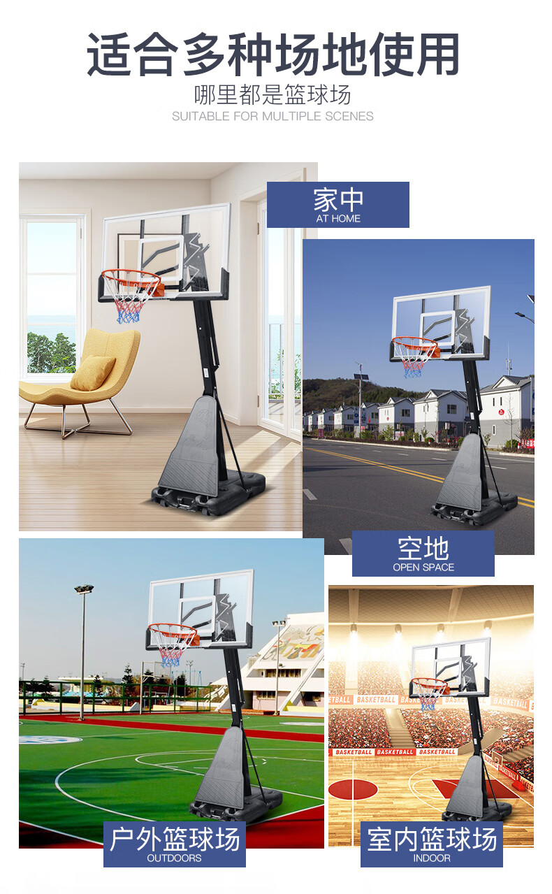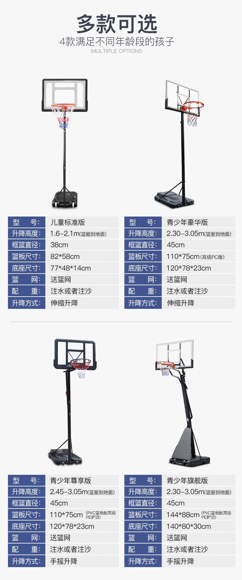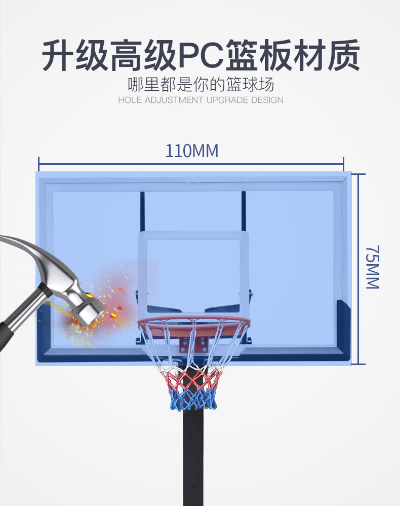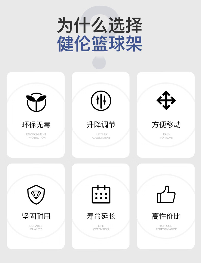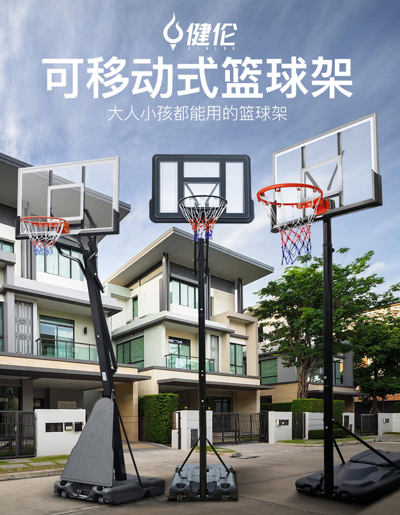 健伦(JEEANLEAN)JLAA154篮球架家用成人儿童户外可移动旗舰版(手调2.30-3.05m) 自营