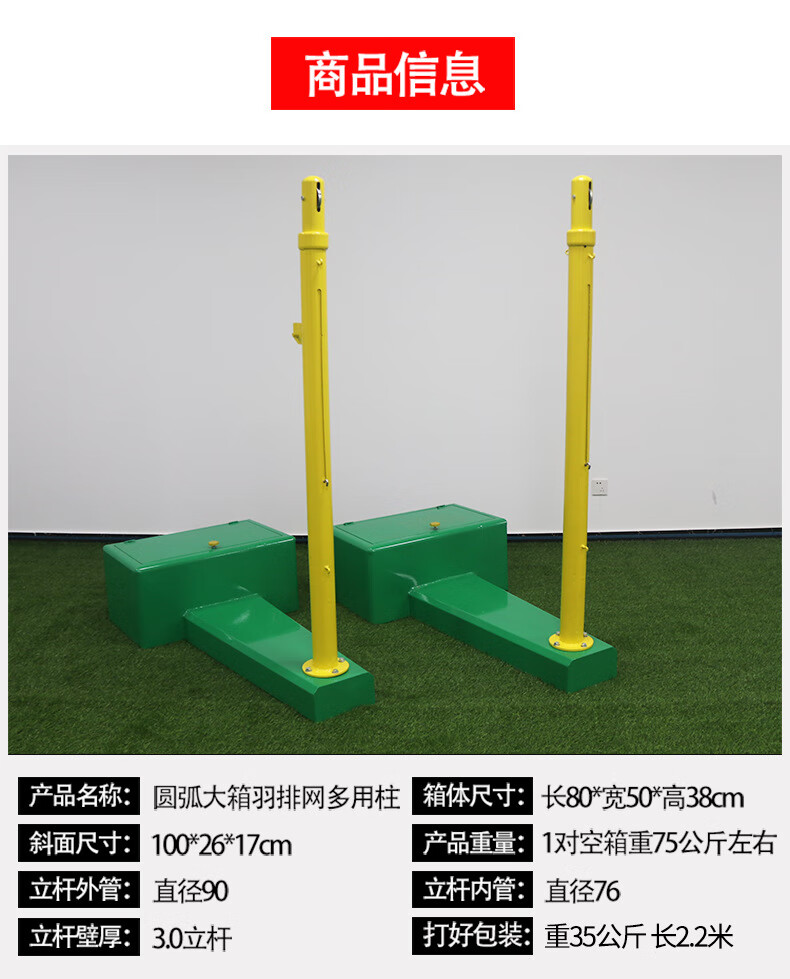 健伦高档圆弧排球柱 齿轮升降 羽毛球气排球排球多用网柱 自营