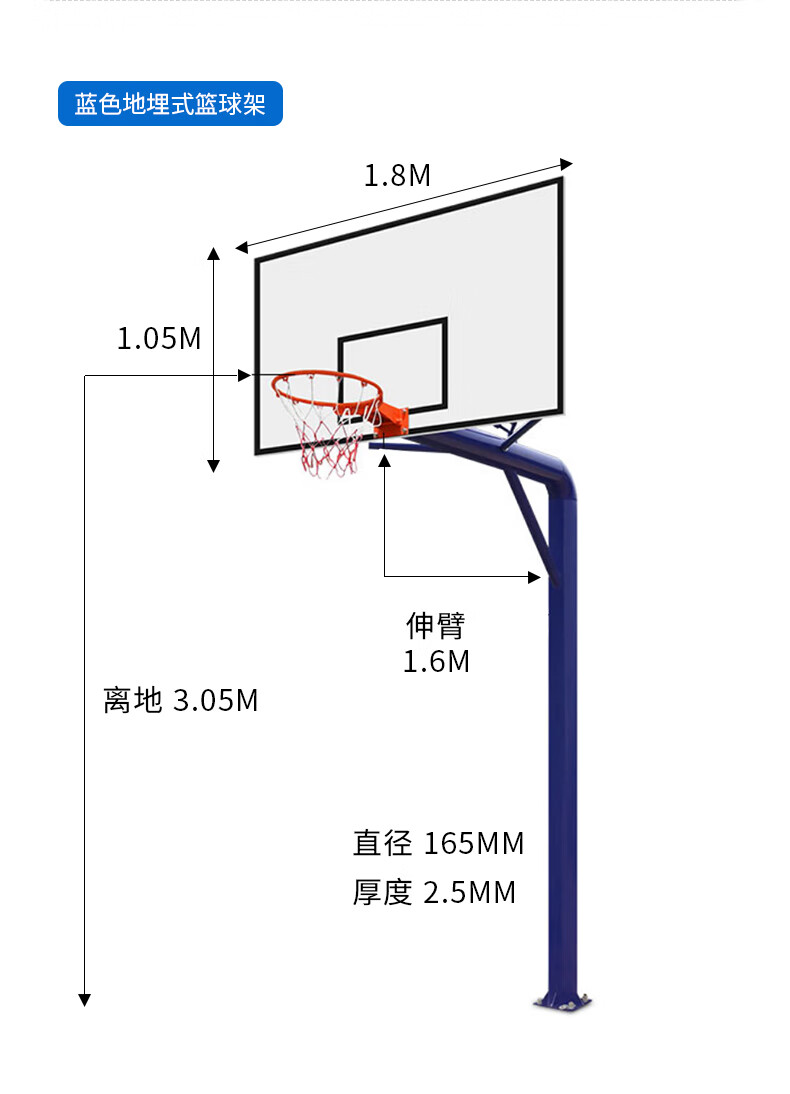 健伦(JEEANLEAN)JLAA113户外篮球架篮球架 标准成人移动地埋式篮球架绿色圆管 自营