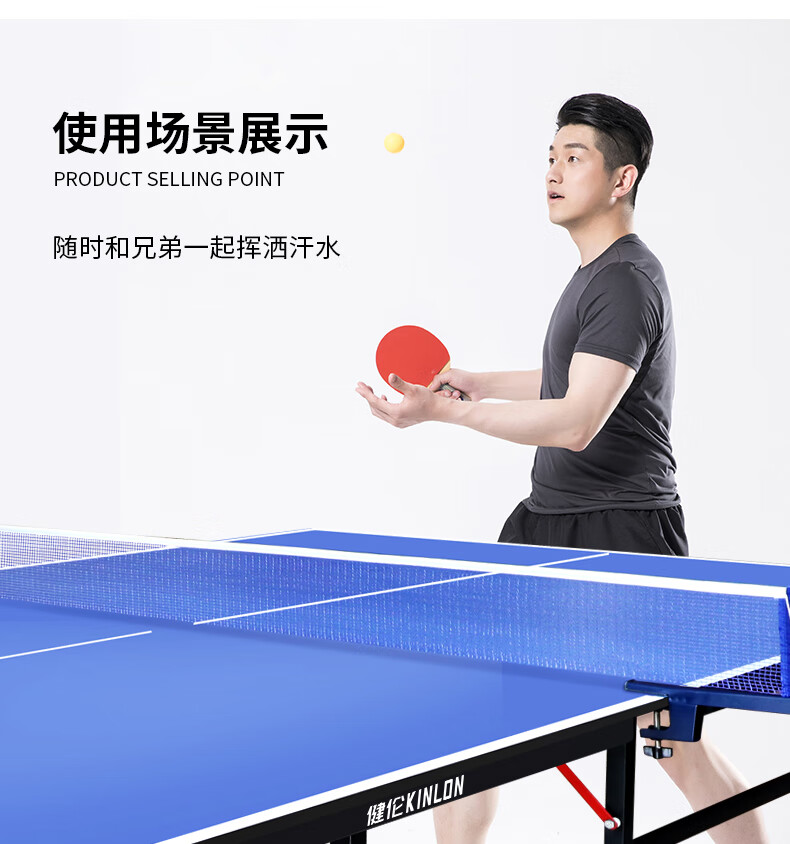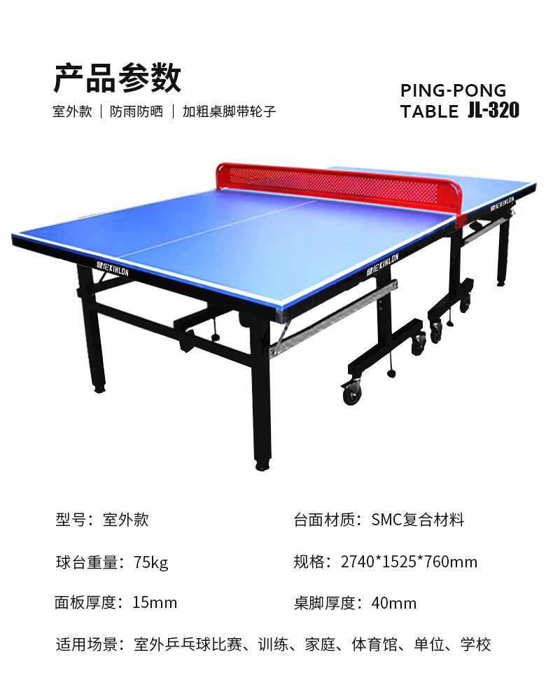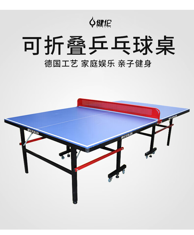 健伦室内家用带轮可折叠标准移动乒乓球桌 进阶户外乒乓球台JLAC101 自营