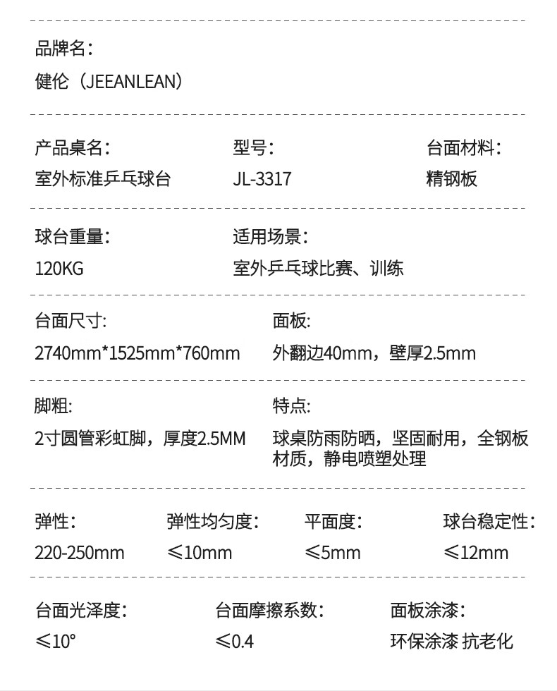 健伦室外乒乓球桌家用内折叠户外乒乓球台JL3617(室外豪华版) 自营