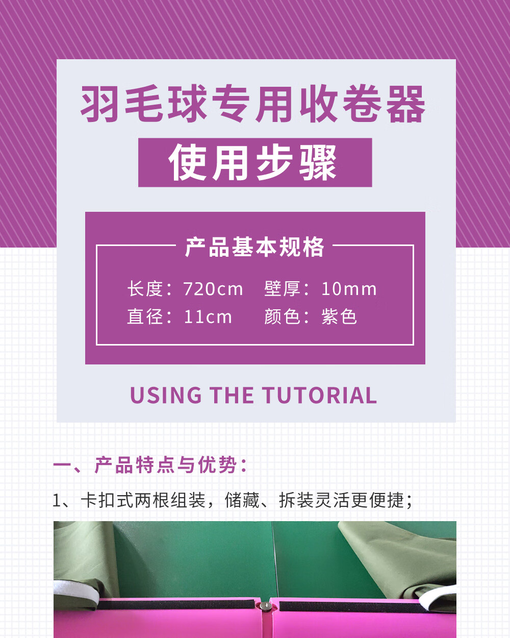 健伦羽毛球地胶专用收卷器PVC运动地胶收卷器可移动JL-P72R 自营