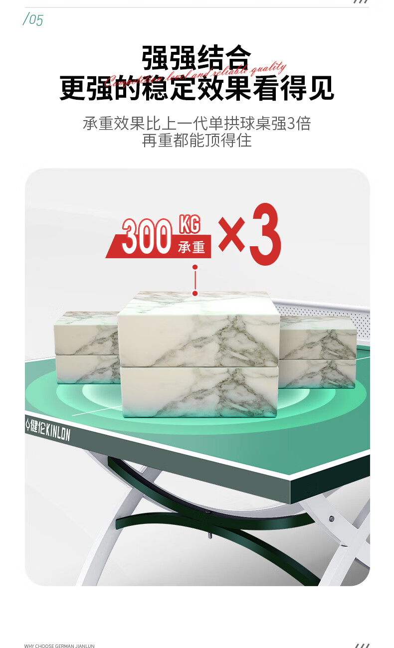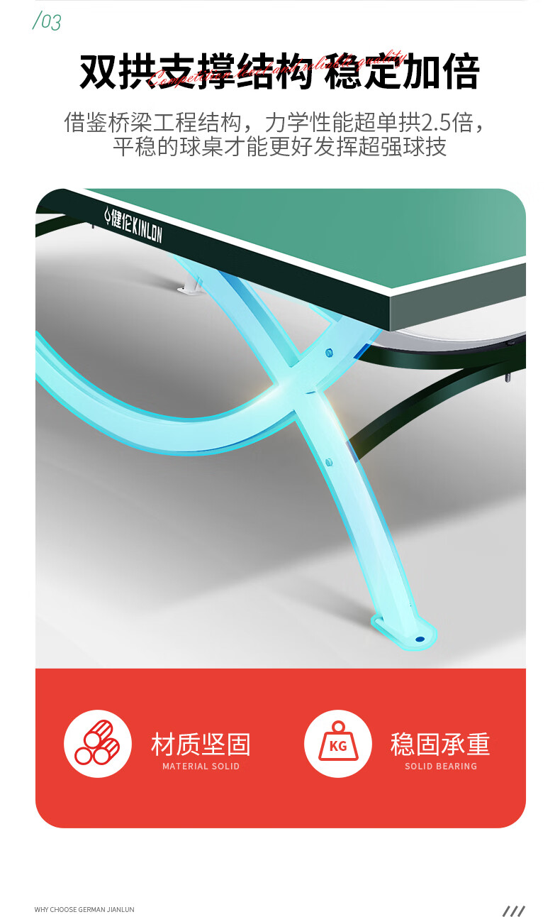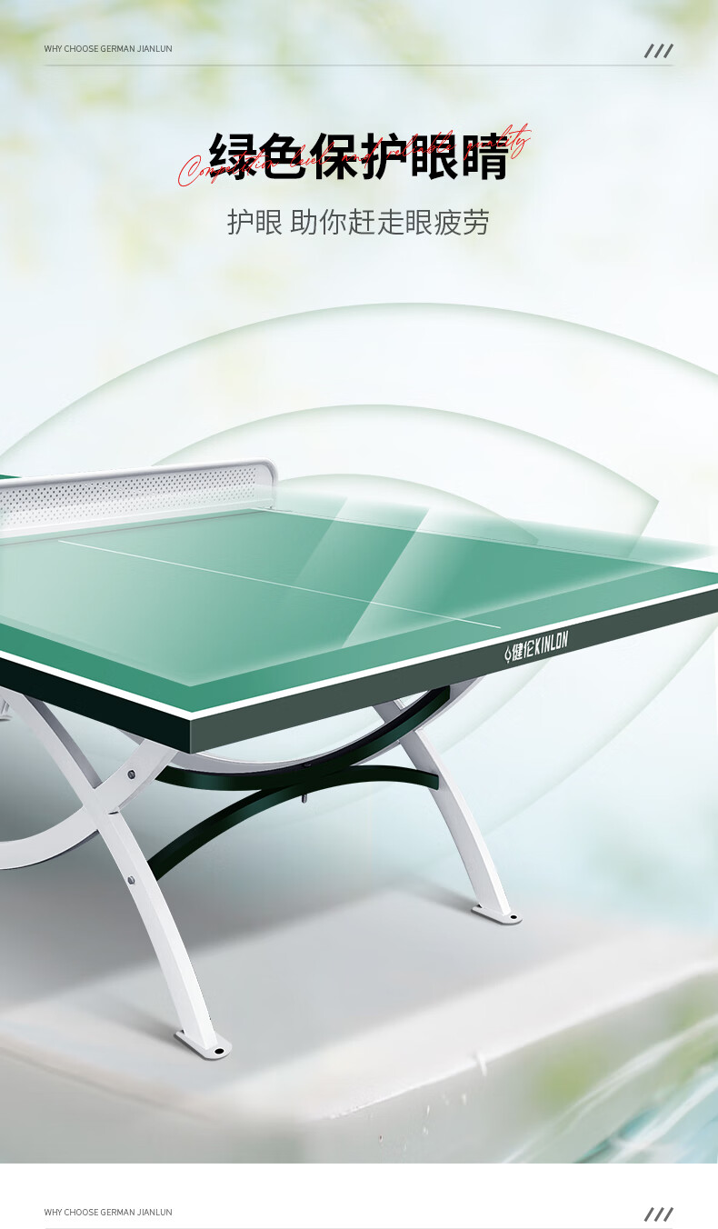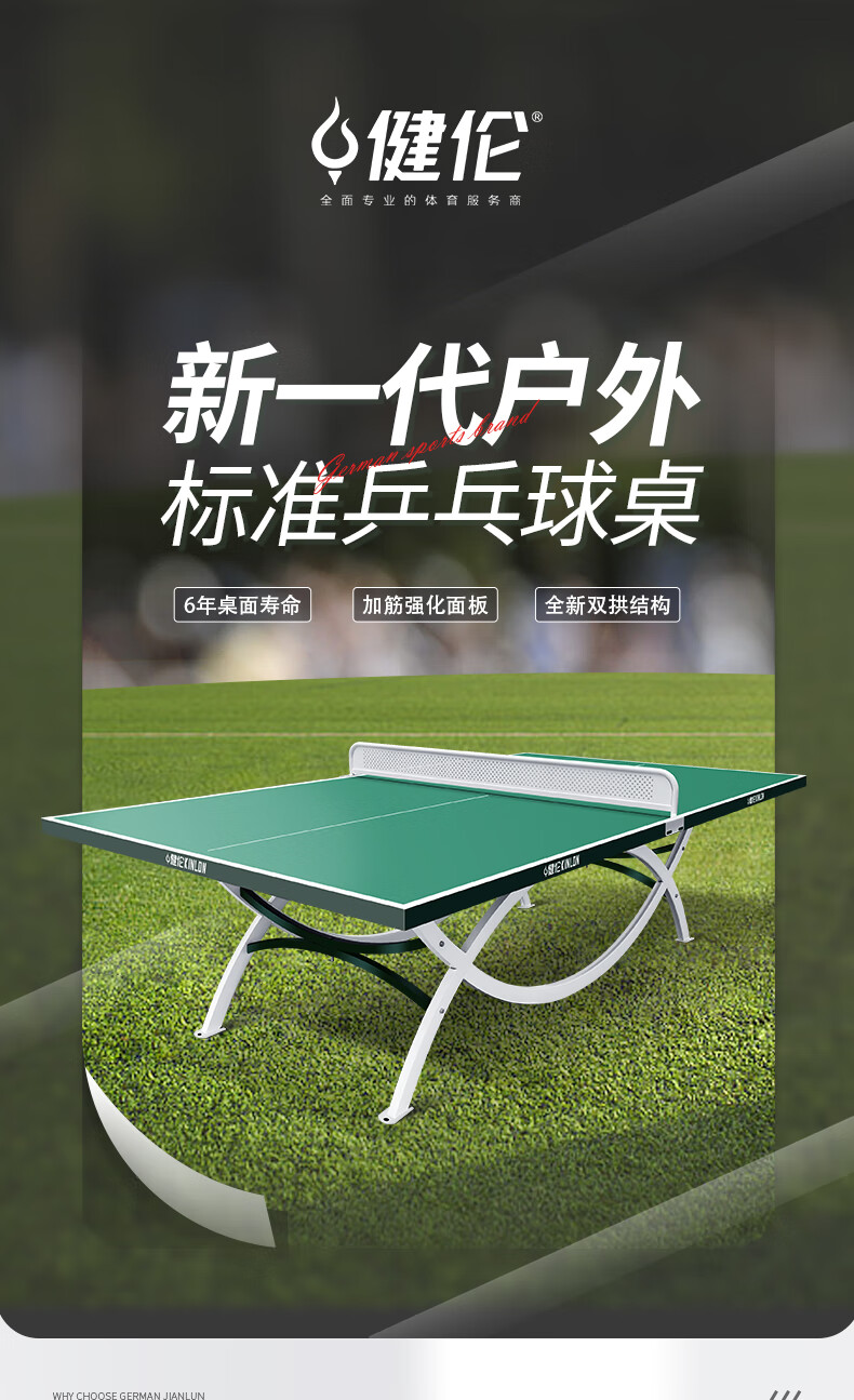 健伦乒乓球桌室外移动乒乓球台 双拱桥高级乒乓球案子 绿色JL373 自营