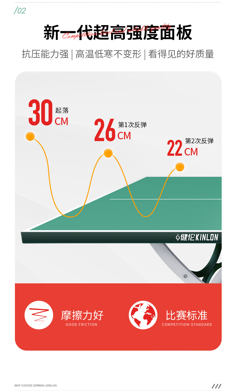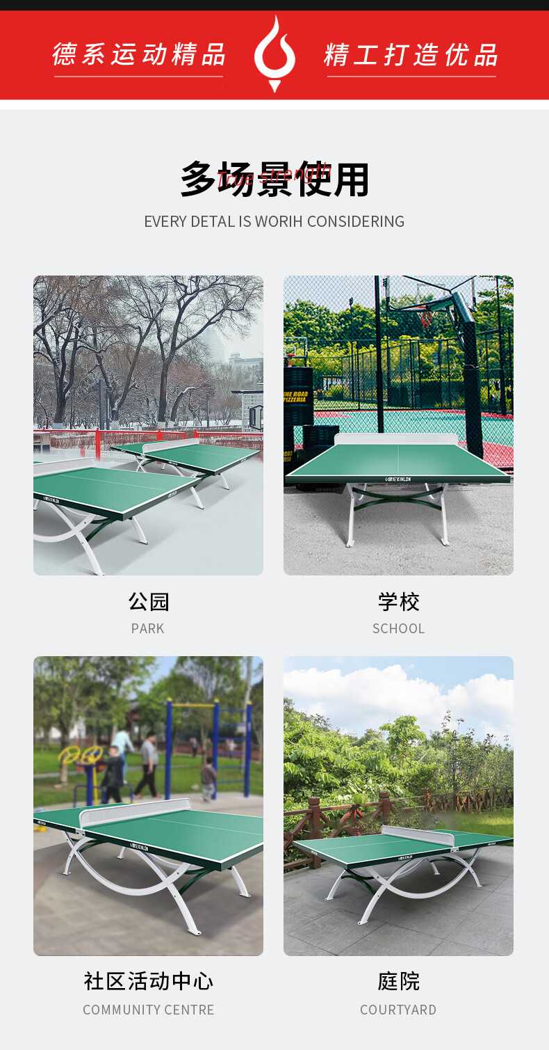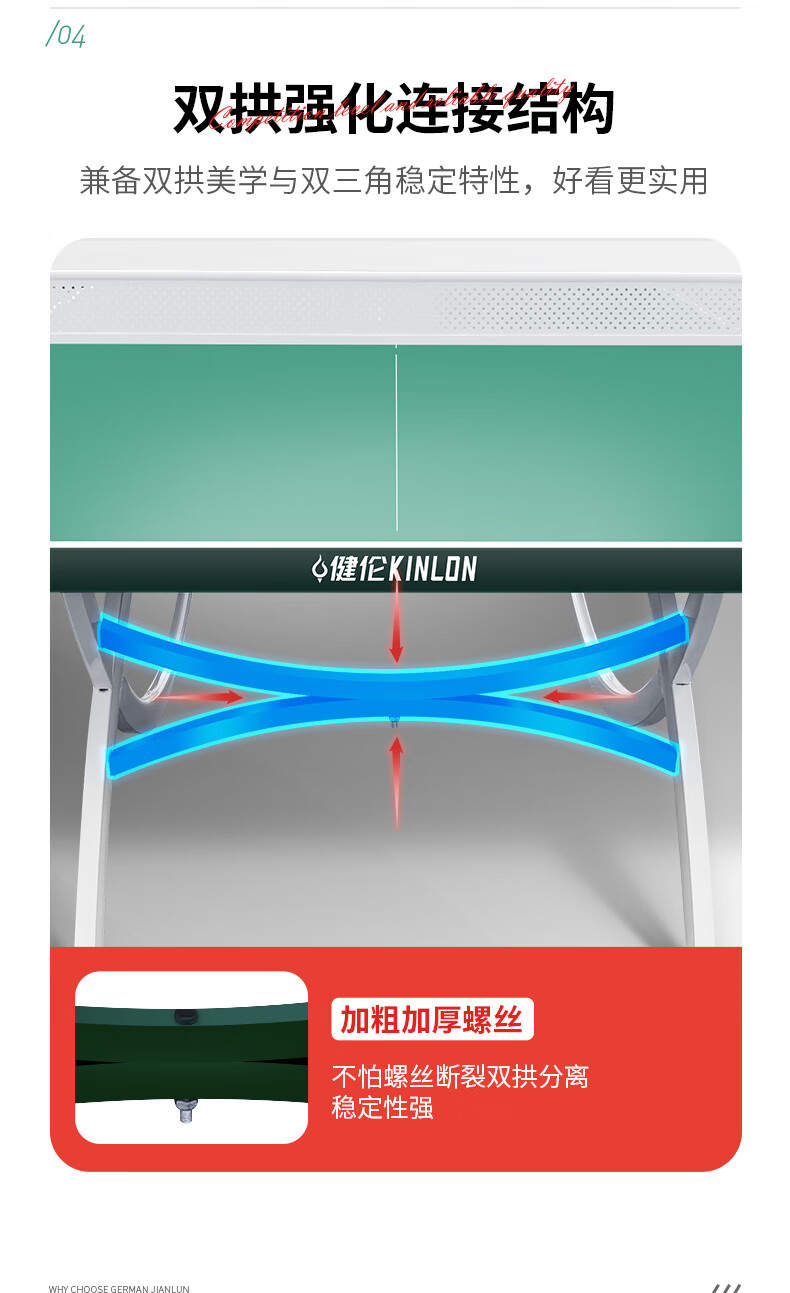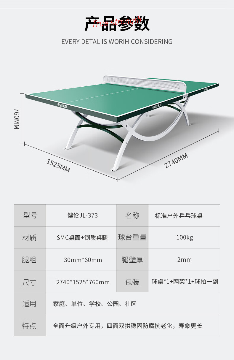 健伦乒乓球桌室外移动乒乓球台 双拱桥高级乒乓球案子 绿色JL373 自营