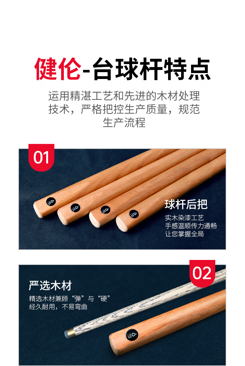 健伦健伦台球杆小头分体桌球杆黑8八中式单支球杆 TQG-T02 自营