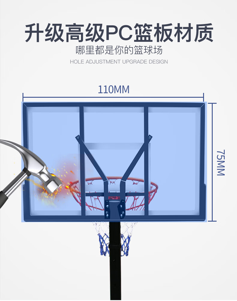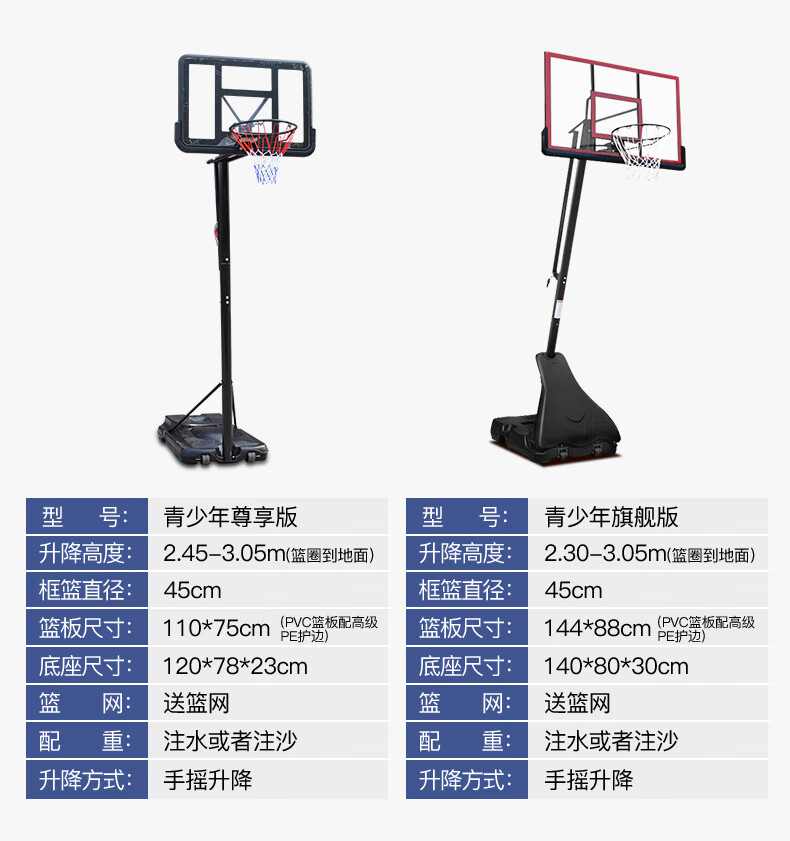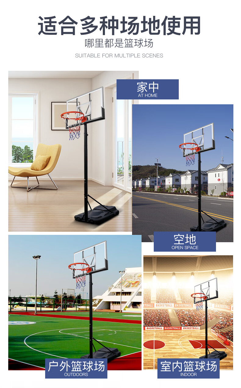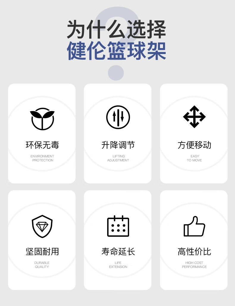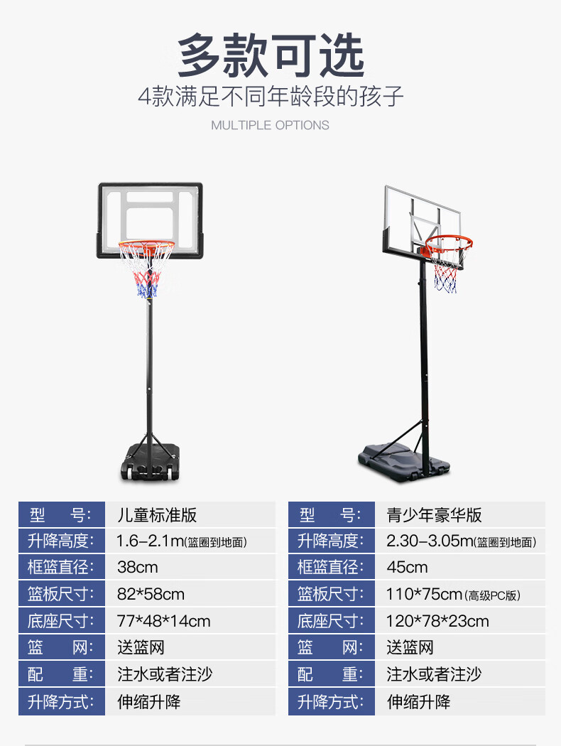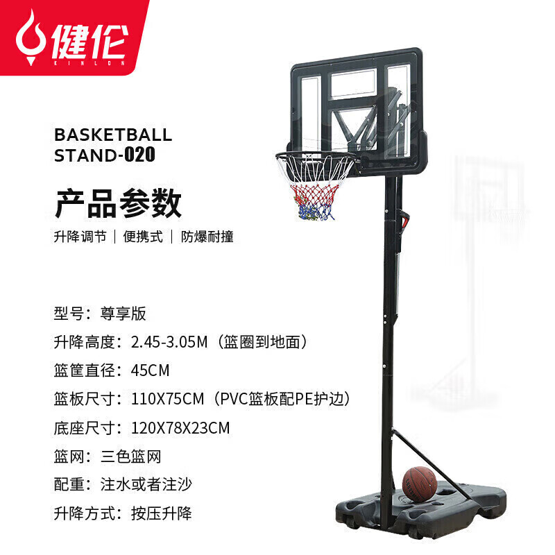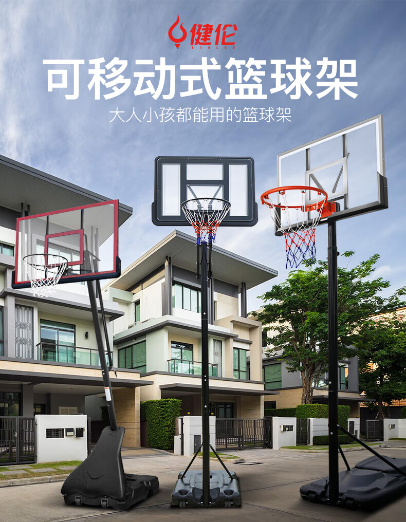 健伦(JEEANLEAN)JL-HB020篮球架家用成人儿童户外升降移动尊享版(2.45-3.05m) 自营