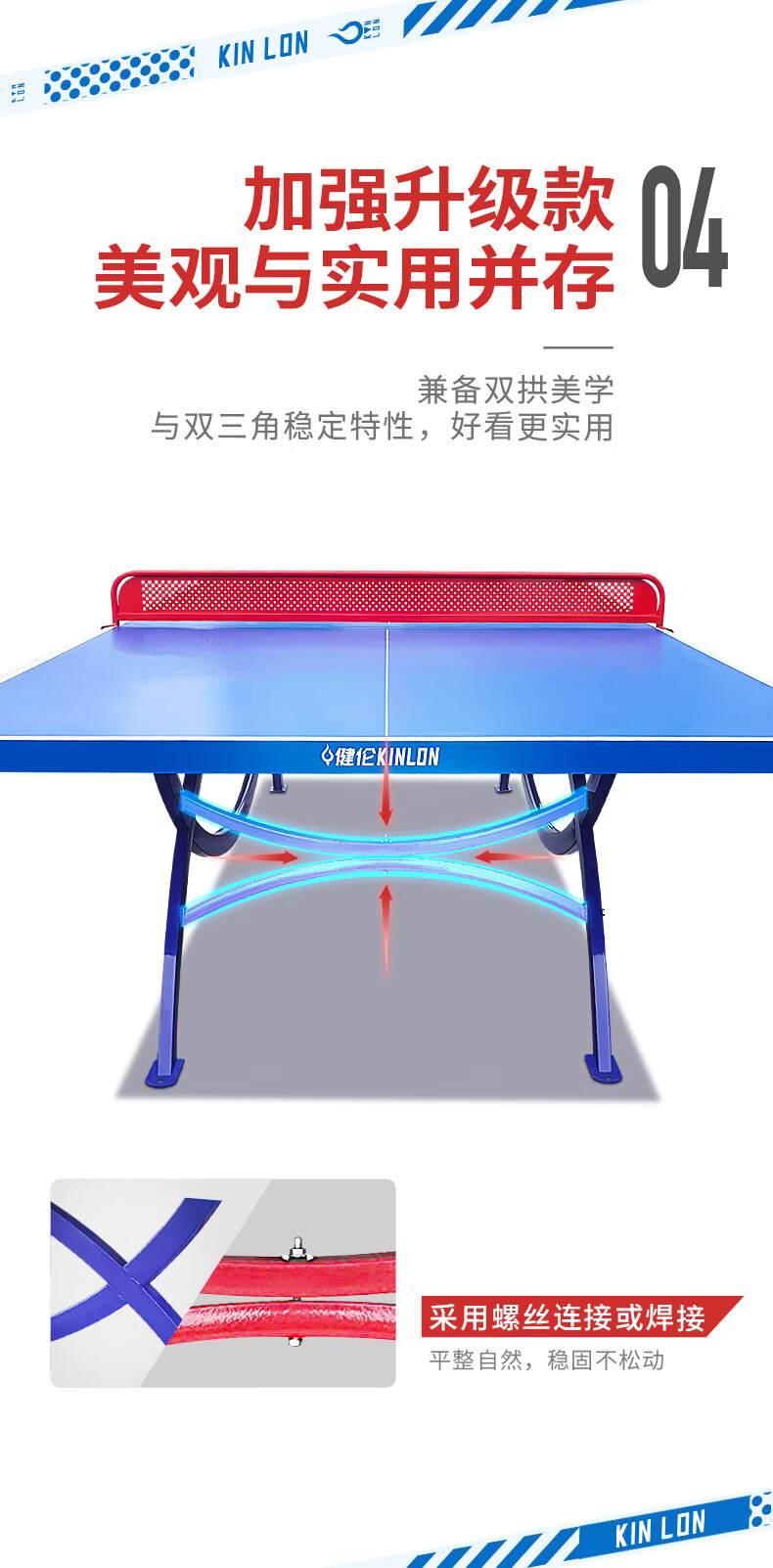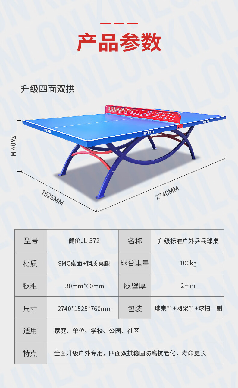 健伦室外乒乓球桌 彩虹腿款SMC标准户外乒乓球台JL-372 自营