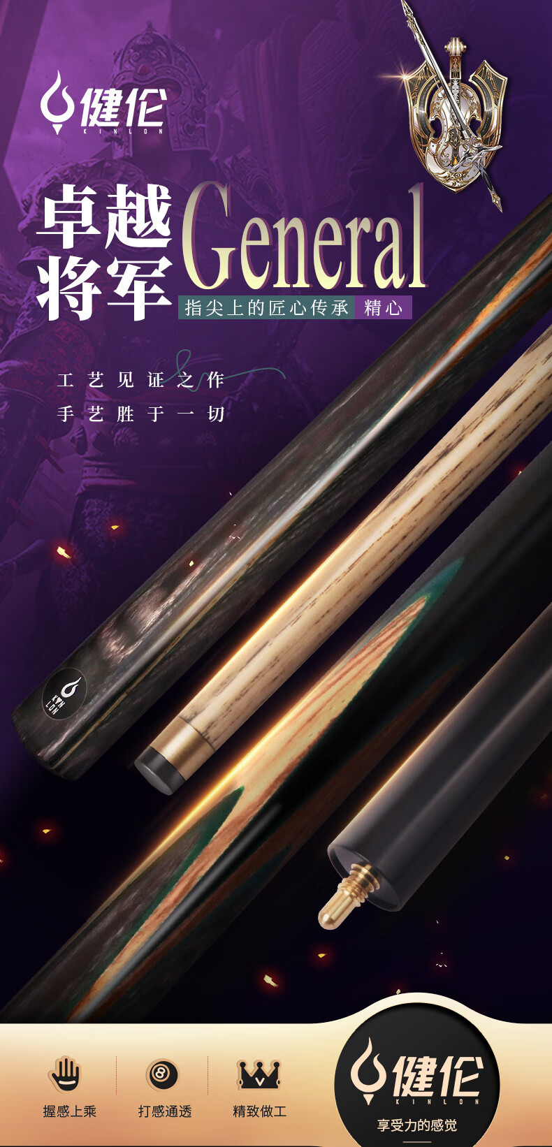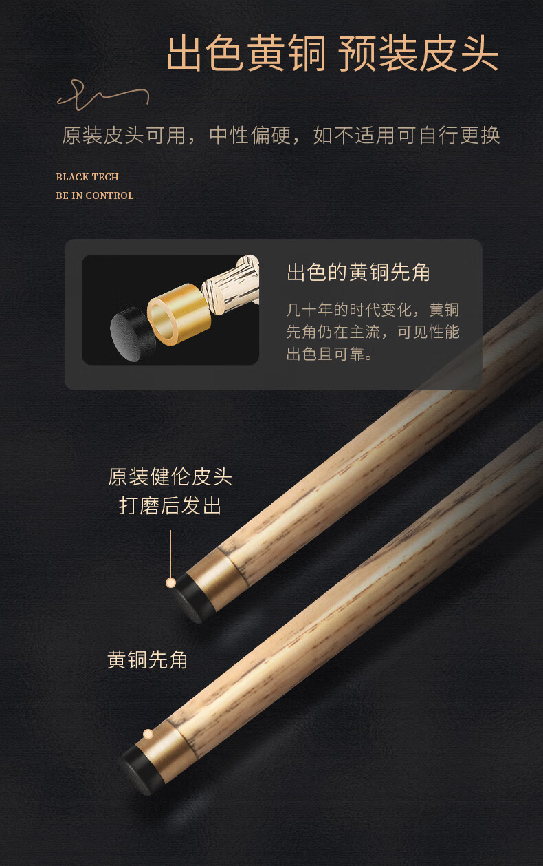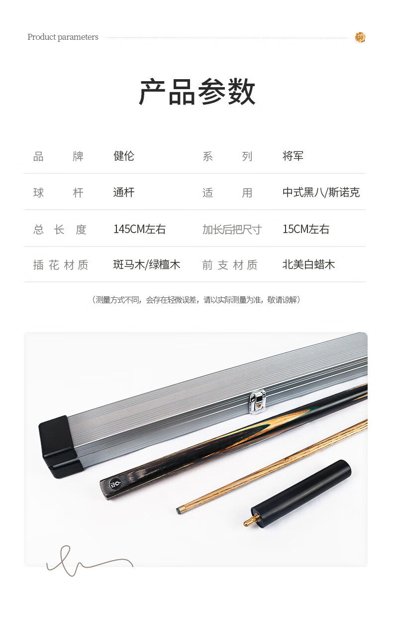 健伦(JEEANLEAN)JLAB211将军台球杆斯诺克球杆小头黑8中式黑八中头八球桌球杆 自营