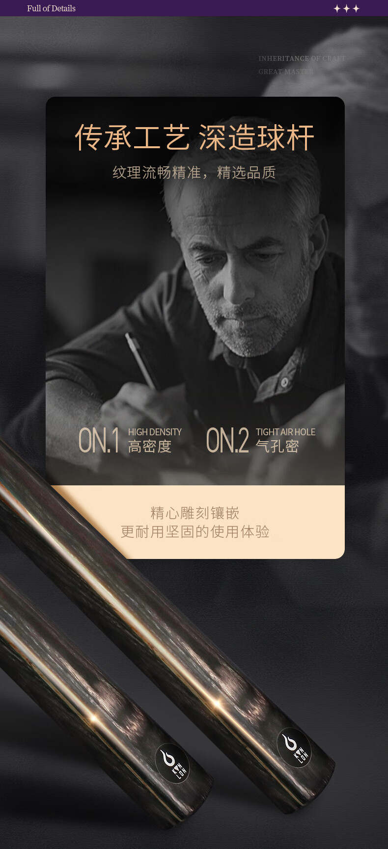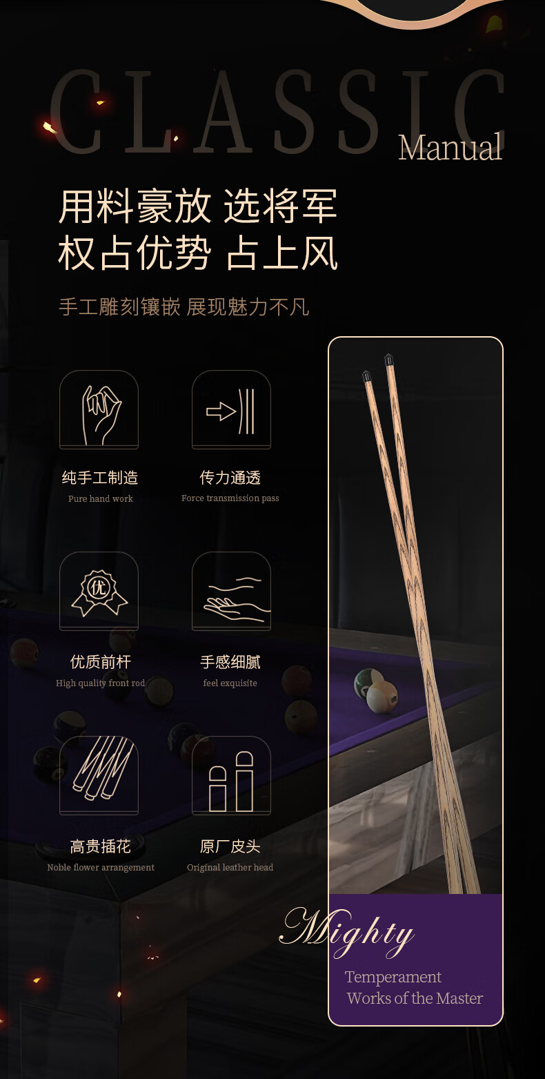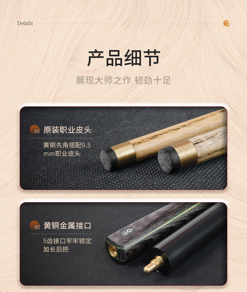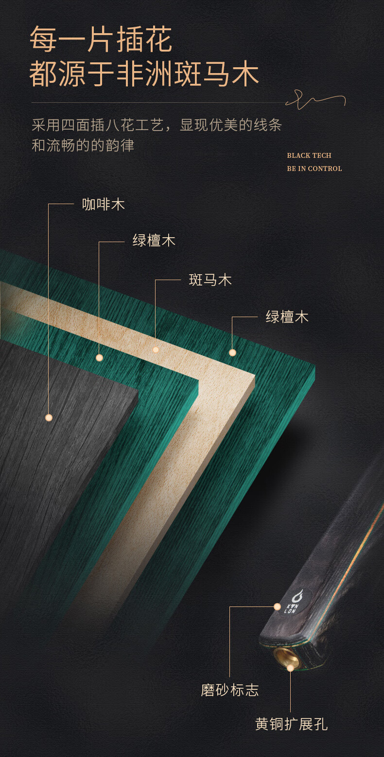 健伦(JEEANLEAN)JLAB211将军台球杆斯诺克球杆小头黑8中式黑八中头八球桌球杆 自营