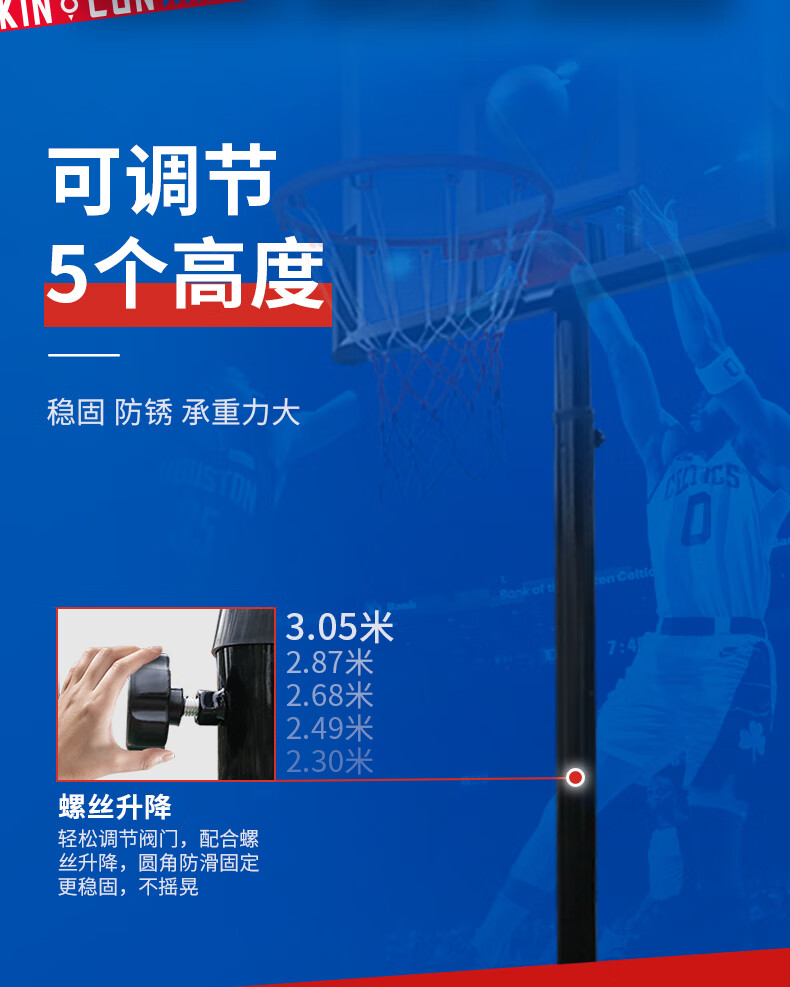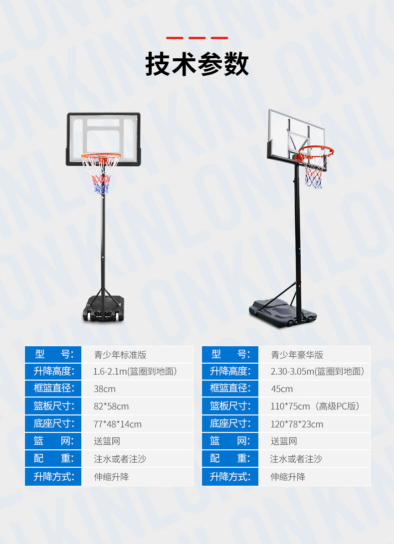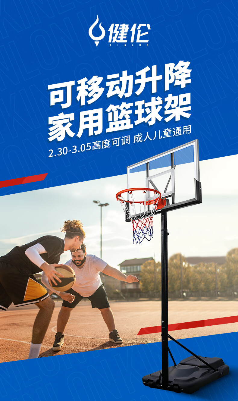 健伦(JEEANLEAN)JL-HB026 篮球架家用 成人户外标准可升降移动 豪华版 自营