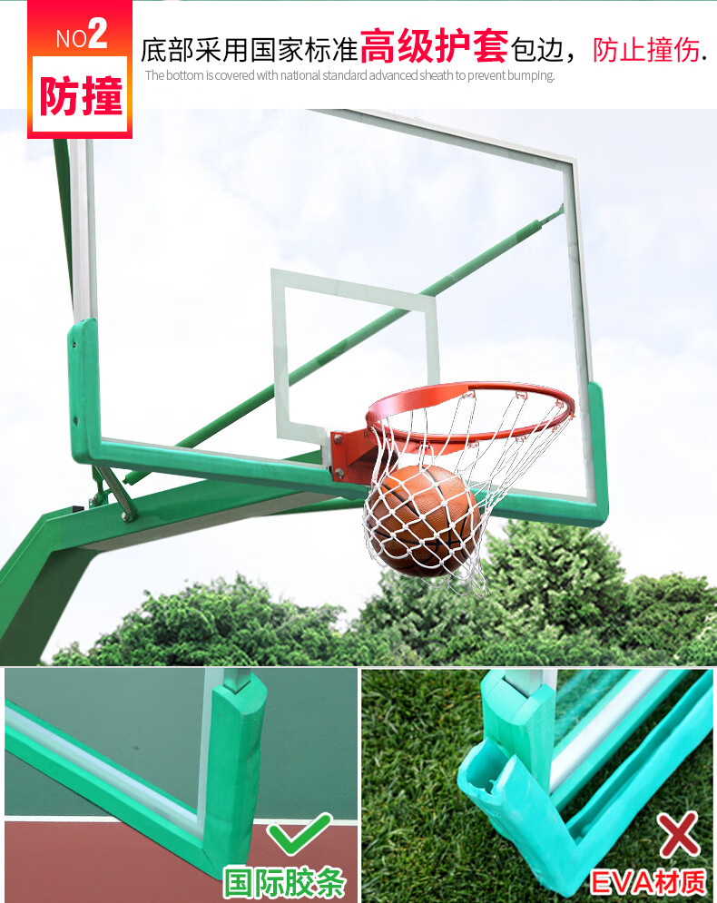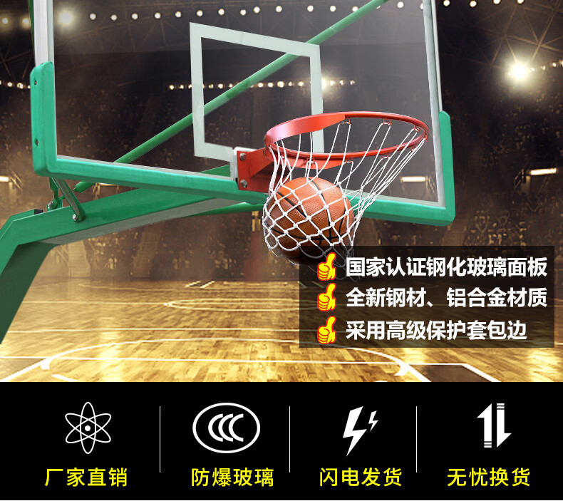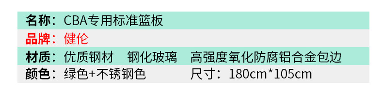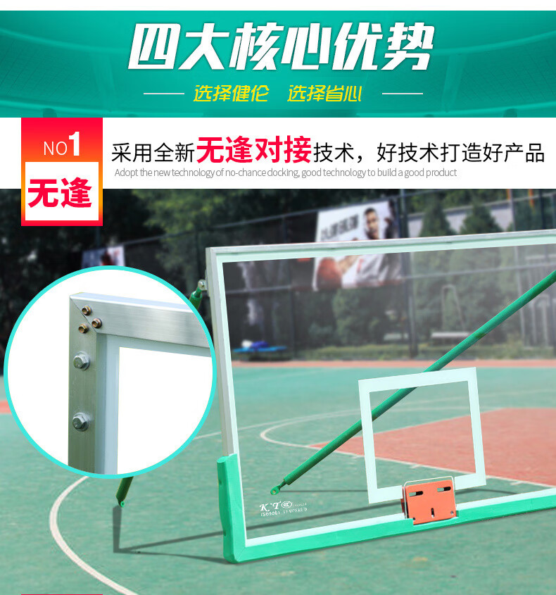 健伦(JEEANLEAN)篮球板室内外钢化玻璃成人标准篮球架板 铝包边1.0厚+实心篮筐 自营