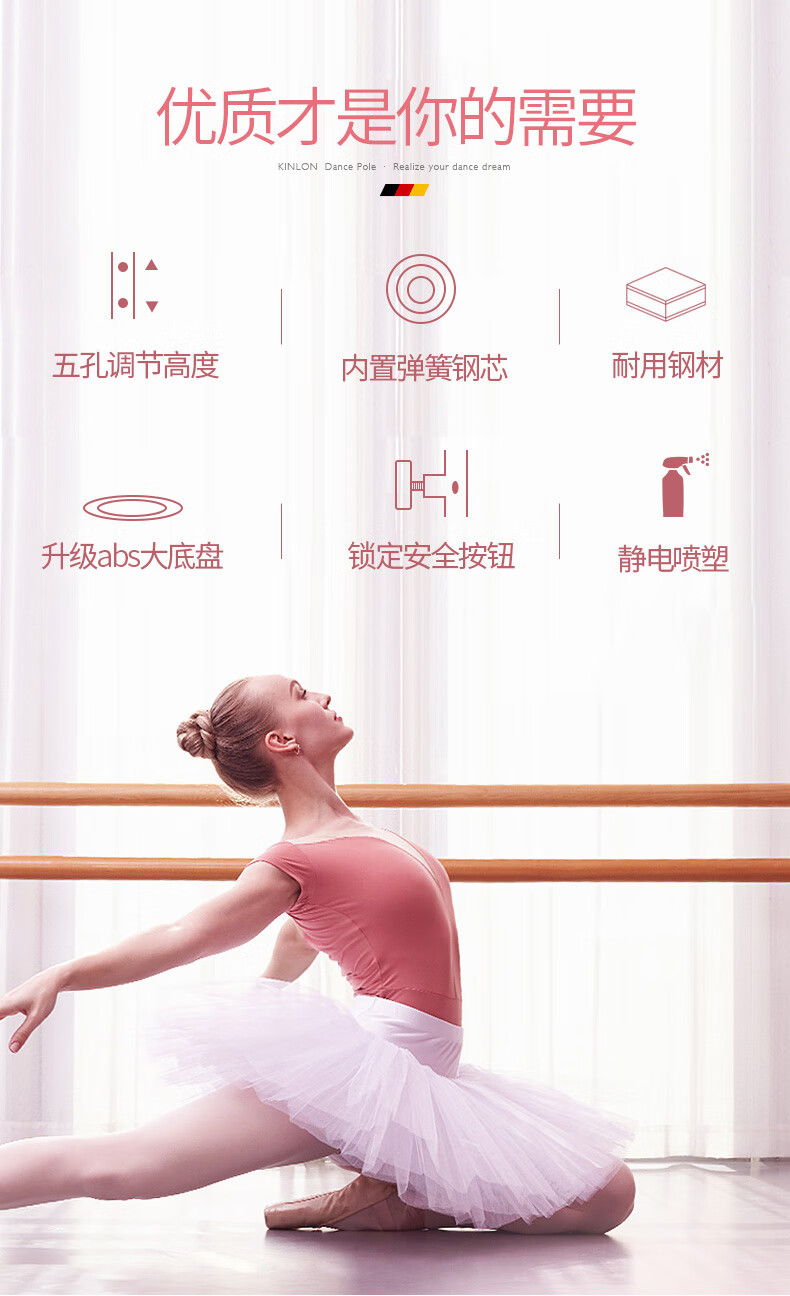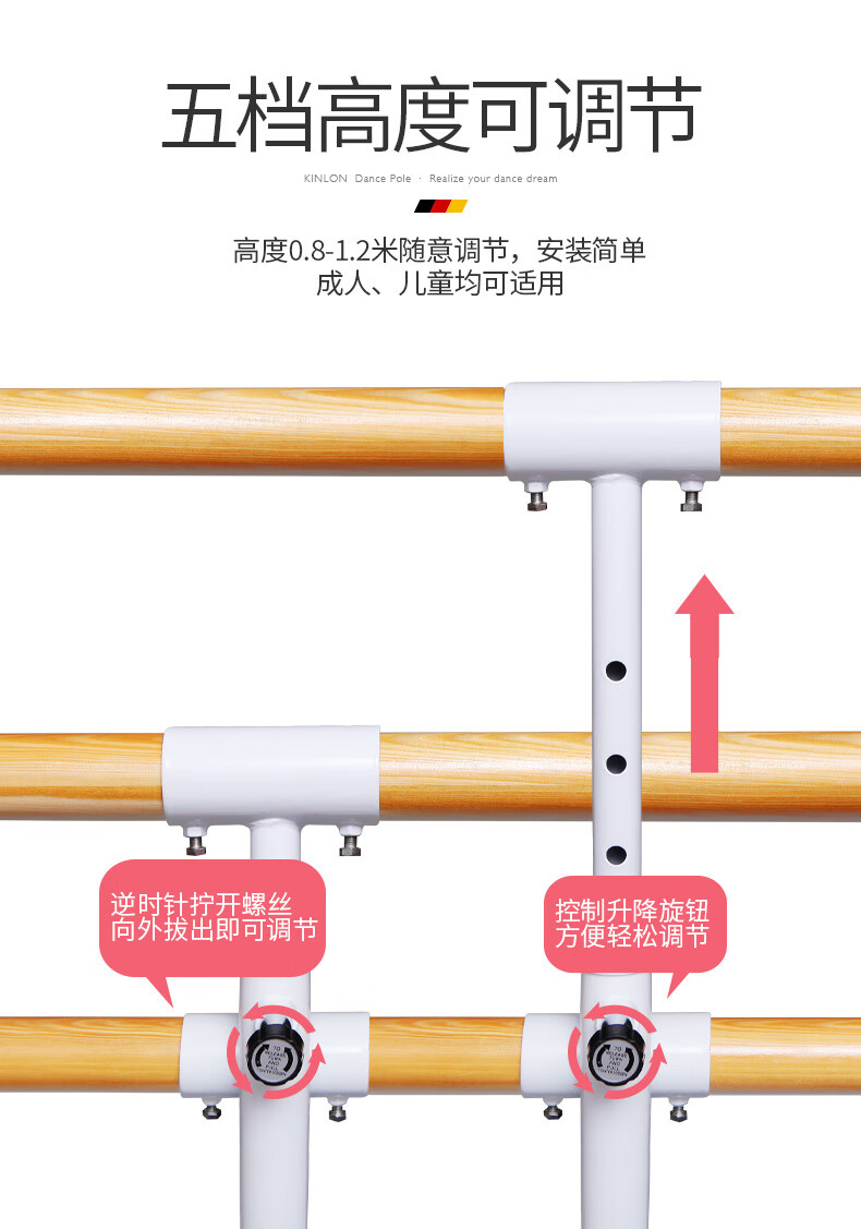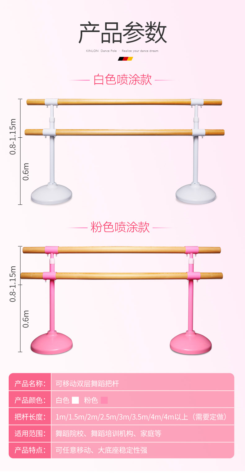 健伦(JEEANLEAN)JL-SCBG舞蹈把杆双层移动式专业压腿儿童家用固定升降式成人把杆4米长 自营