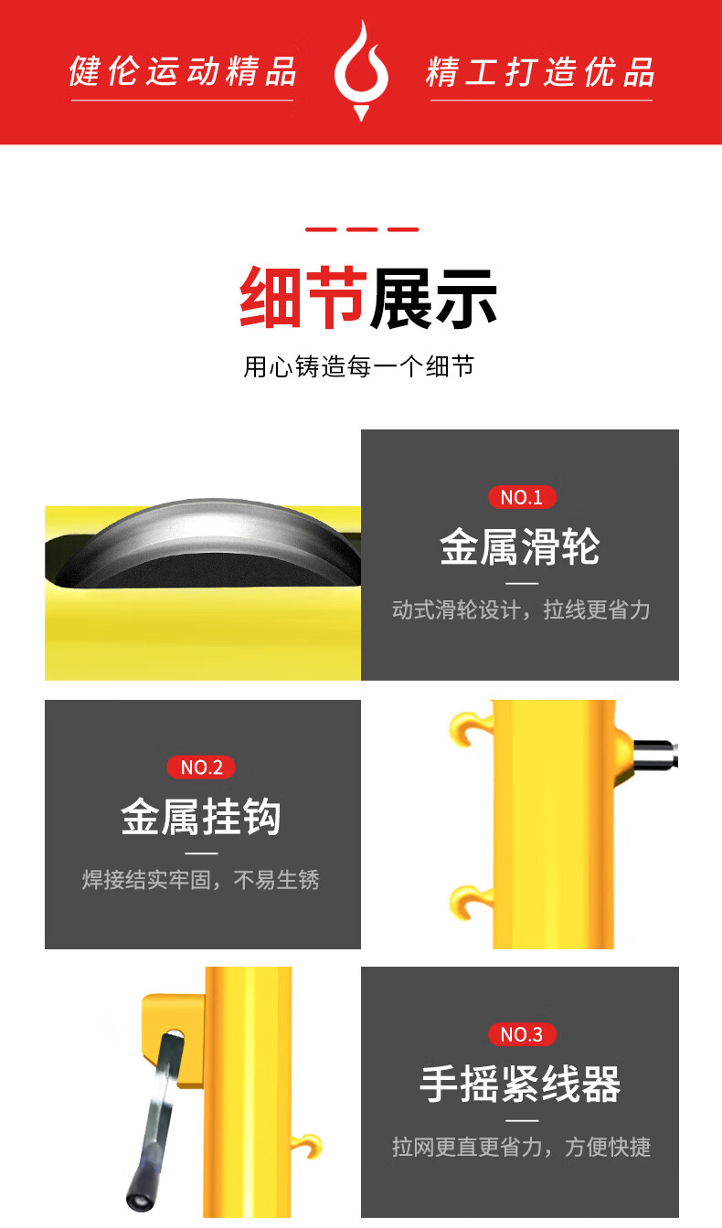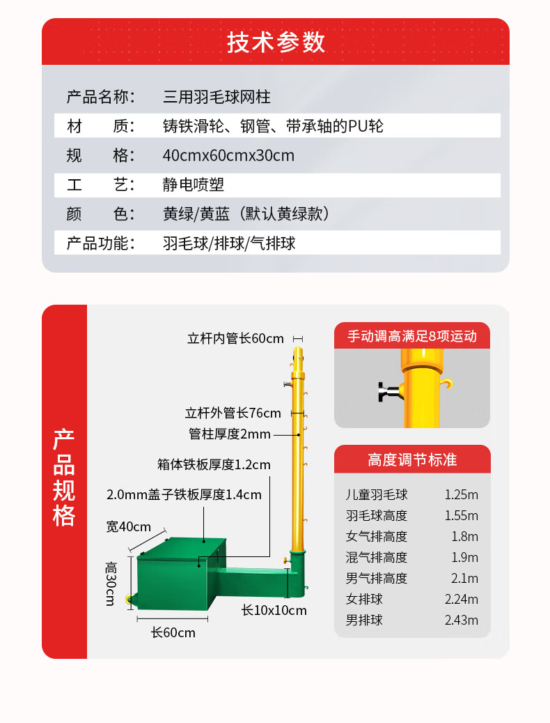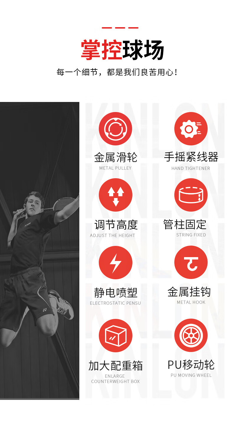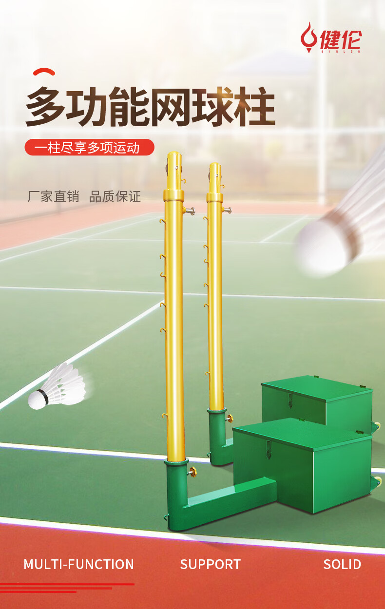 健伦羽毛球网球排球多功能升降网球架 移动便携室内外标准款球柱架子 自营