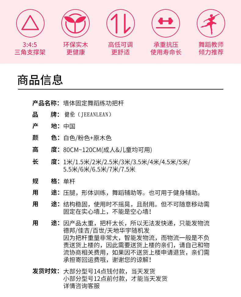 健伦(JEEANLEAN)健伦(JEEANLEAN)JL-W35WD舞蹈把杆壁挂落地款家用固定成人3.5米 自营