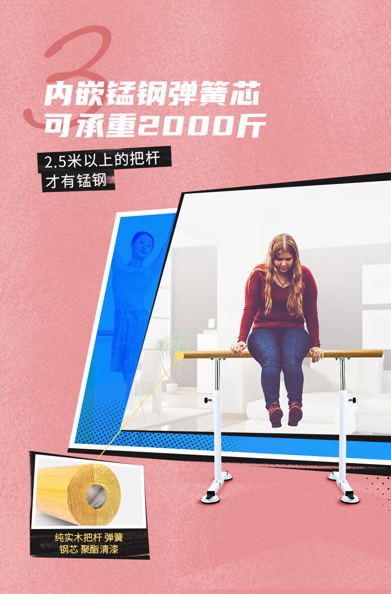 健伦(JEEANLEAN)舞蹈把杆家用压腿型成人儿童便携移动吸盘式把杆黑色2米JL-B20SD 自营