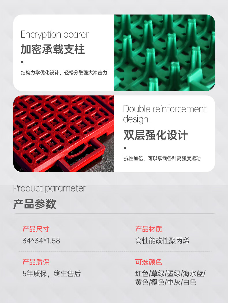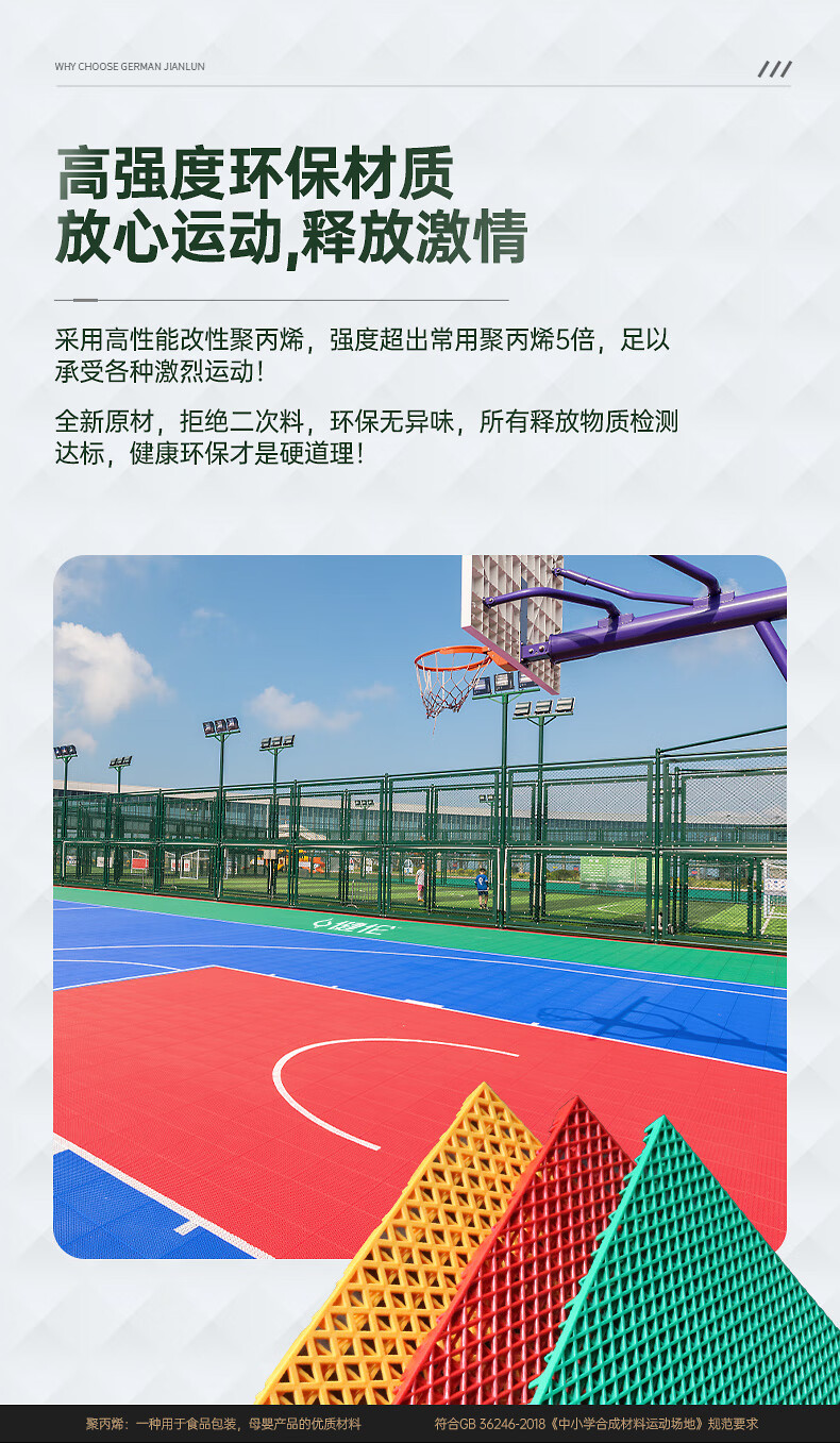 健伦户外悬浮地板篮球场地垫运动地板防滑塑胶地板十六宫格升级款 自营