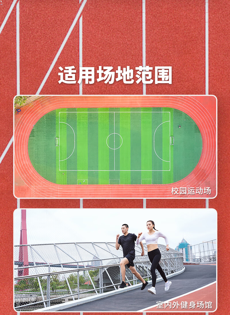 健伦新国标塑胶跑道学校操场体育场全塑型跑道13mm 自营