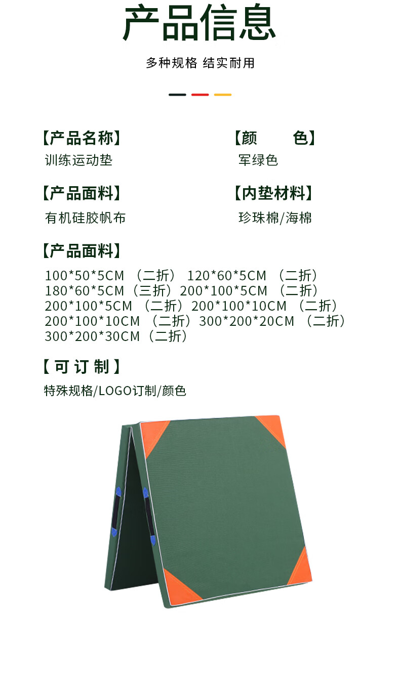 健伦(JEEANLEAN)JL7212 体操垫 学校专用体育垫子仰卧起坐垫跳高垫 帆布海棉 200*100*10cm 二折 自营