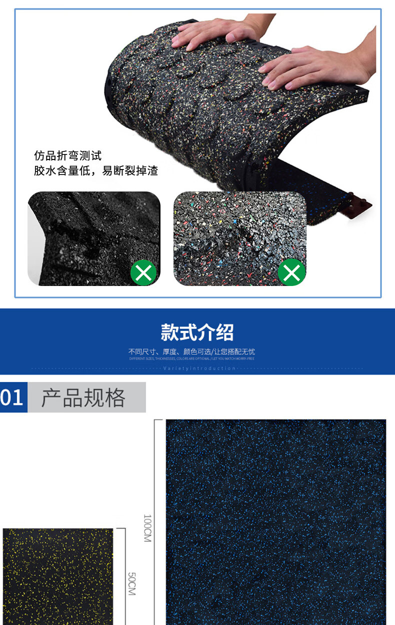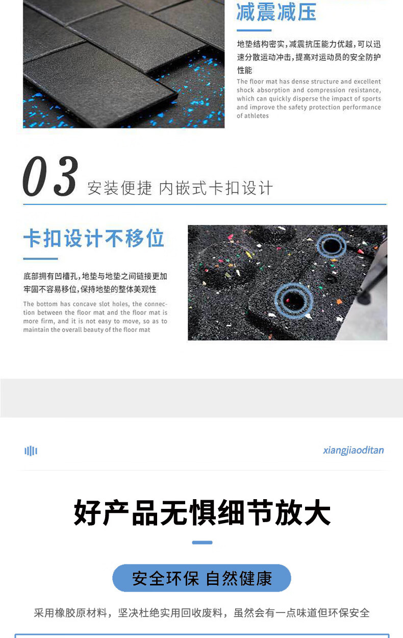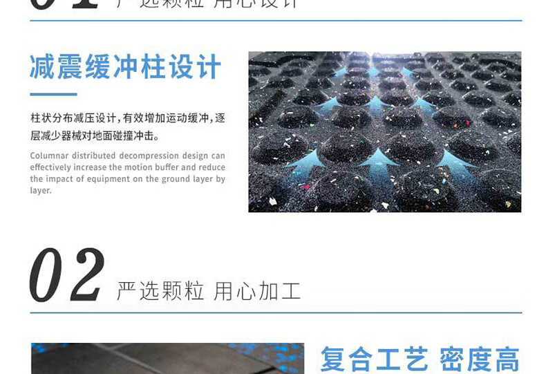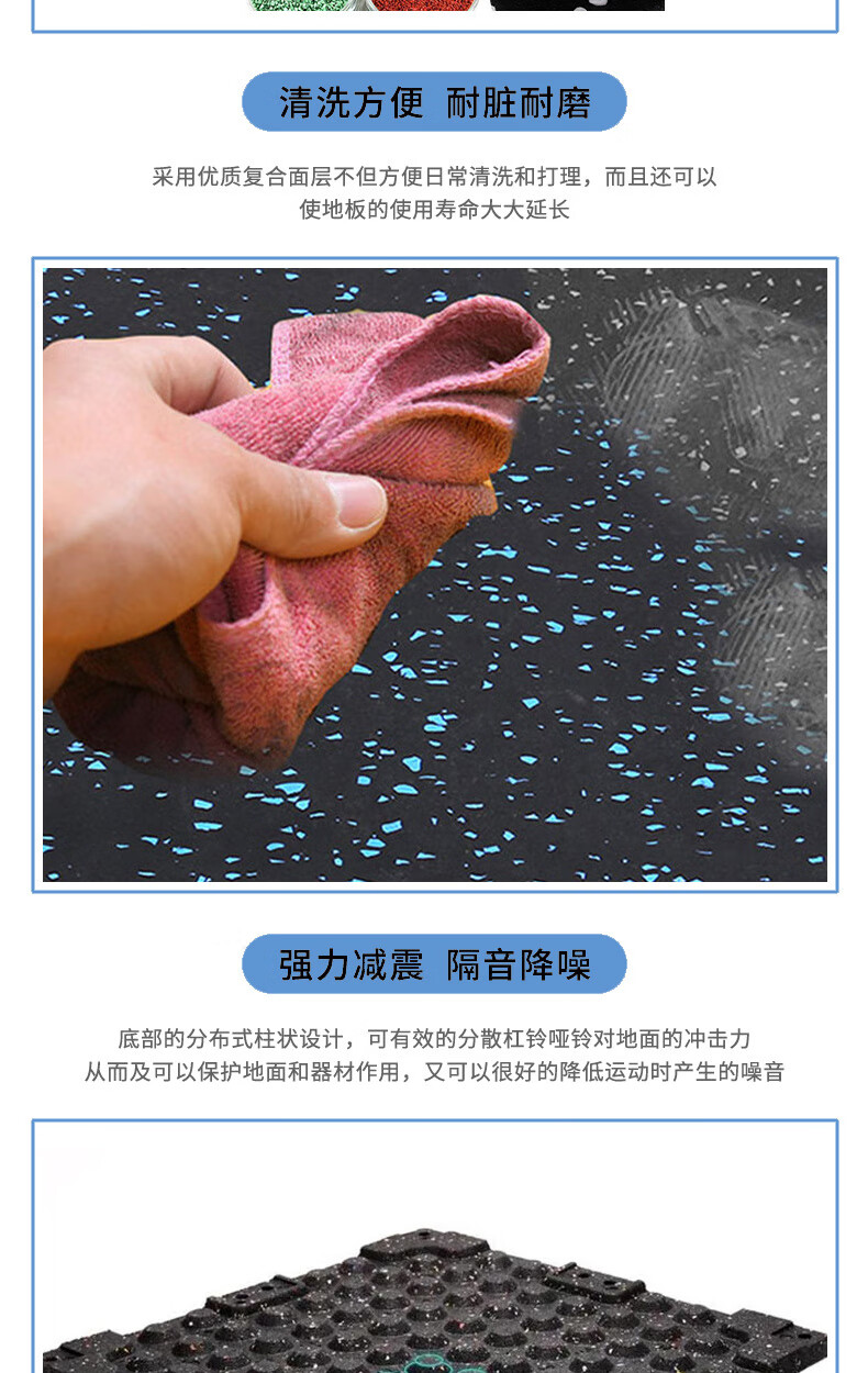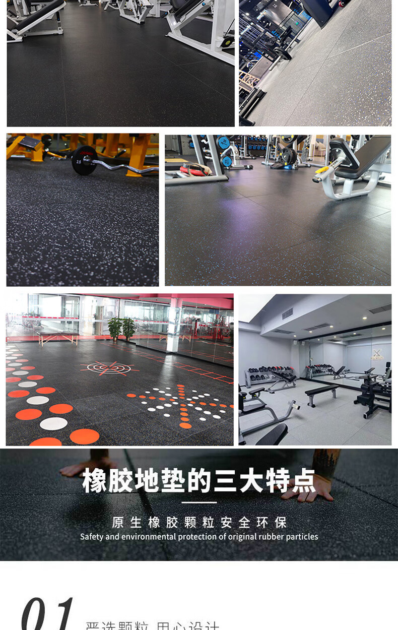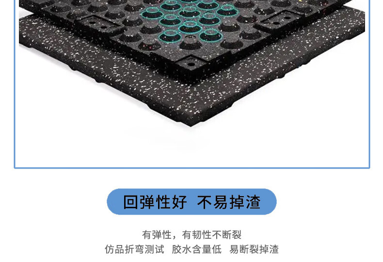 健伦健身房橡胶地垫隔音垫减震垫防砸缓冲地板地垫50*50*4.0带槽款 自营