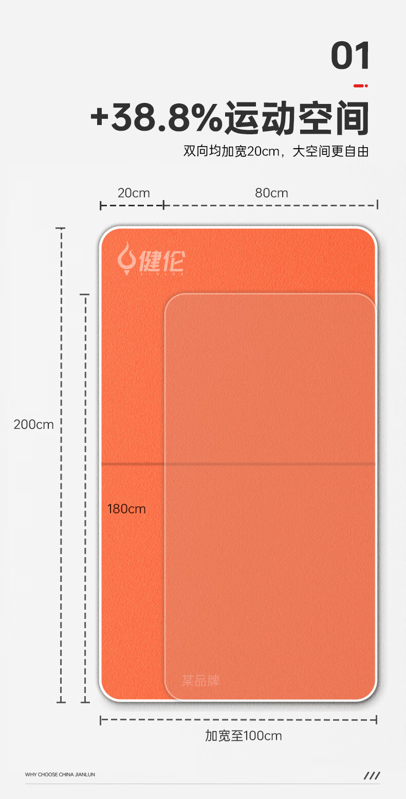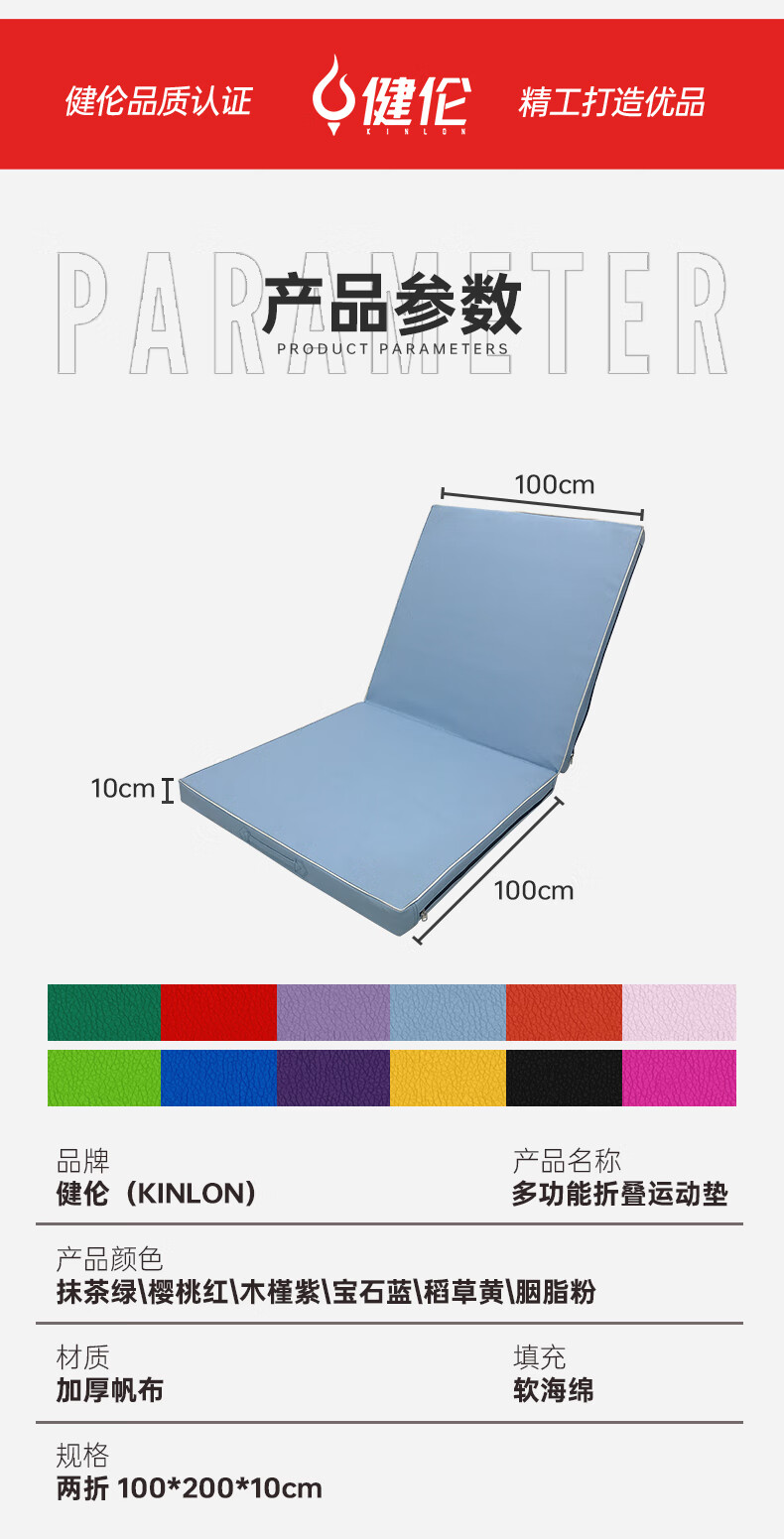 健伦(JEEANLEAN)健身体操垫 瑜伽舞蹈训练 仰卧起坐运动垫 100*200*10 三折PE棉 自营