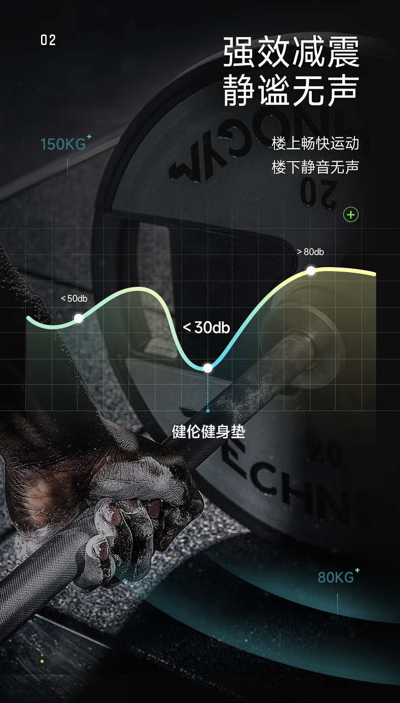 健伦健身房橡胶地垫运动地胶哑铃杠铃防滑减震隔音防砸缓冲地板 自营