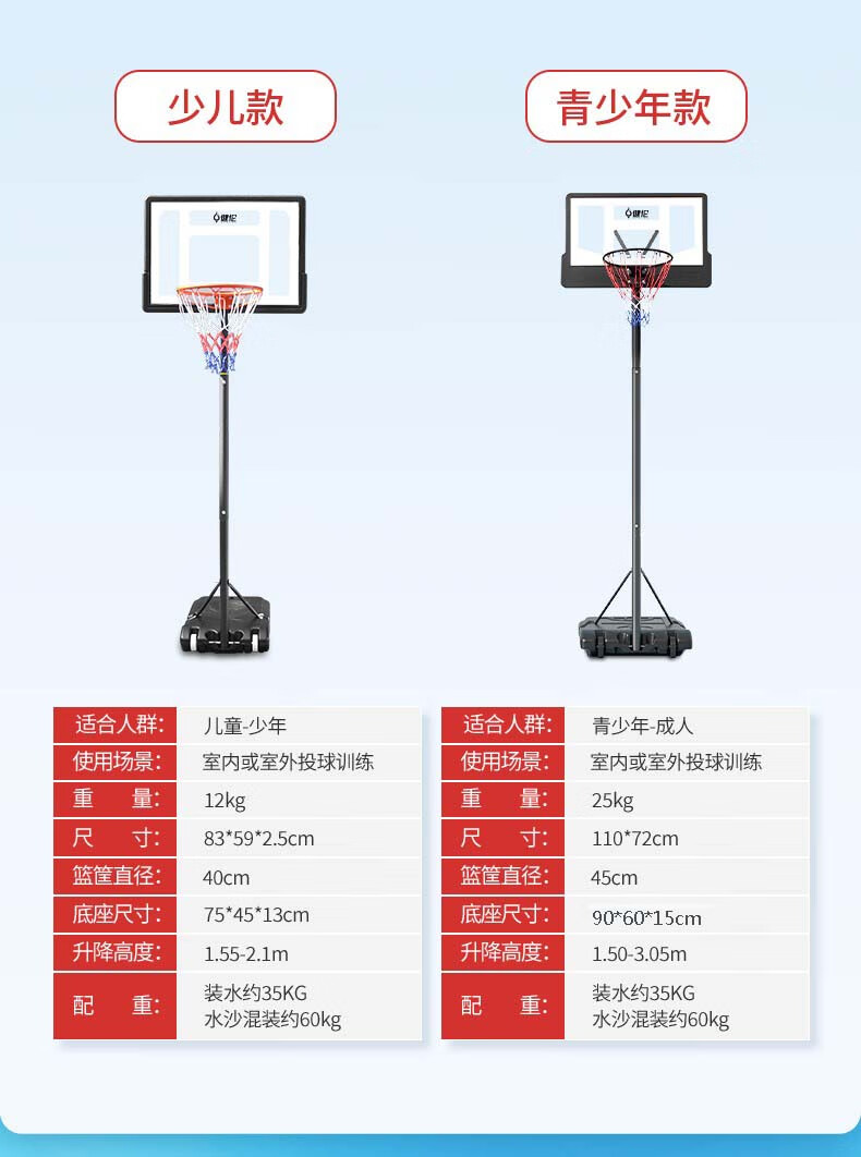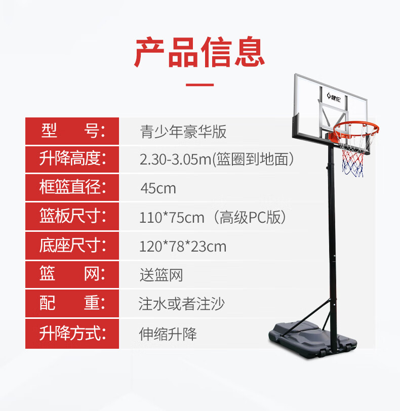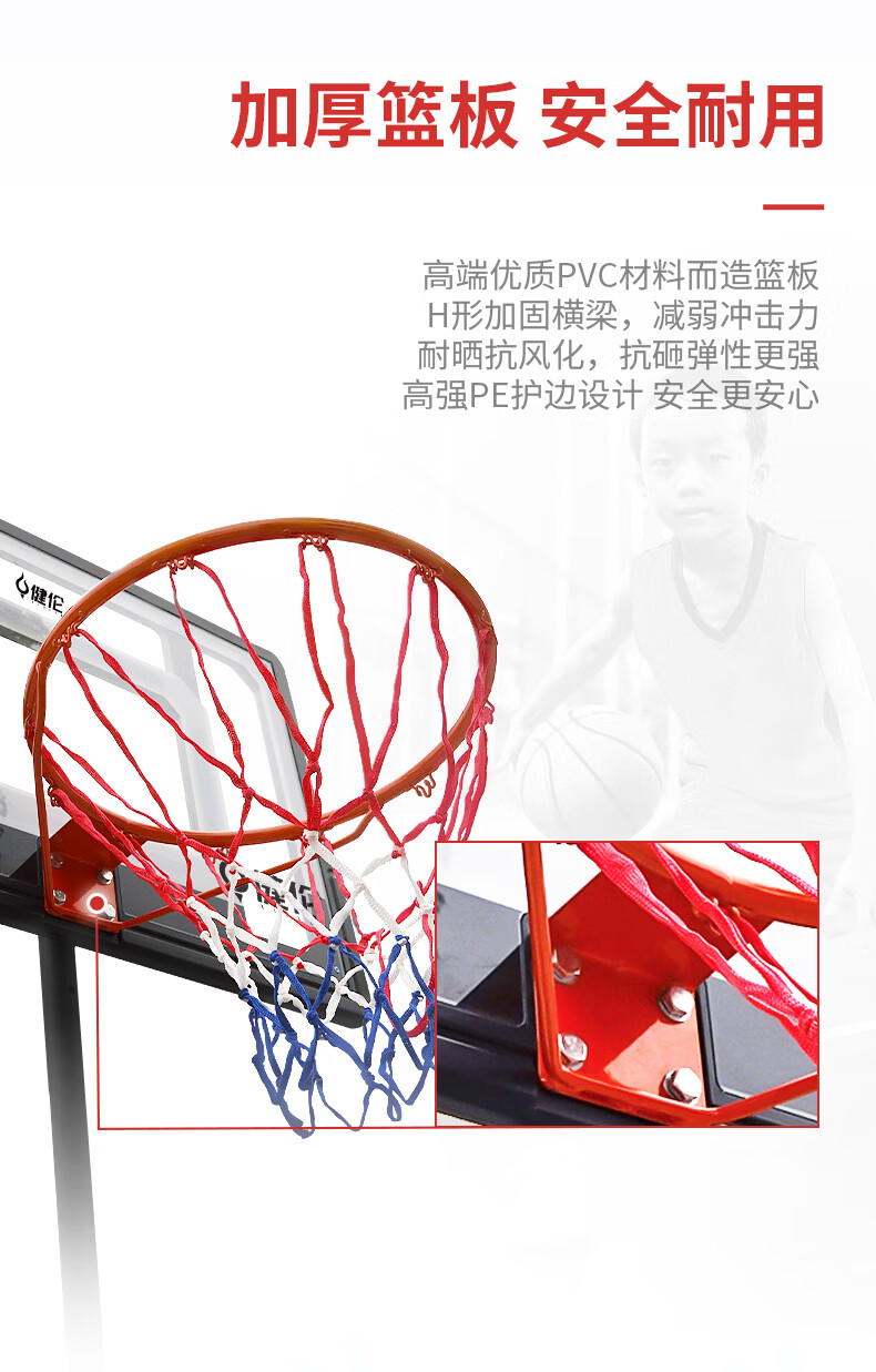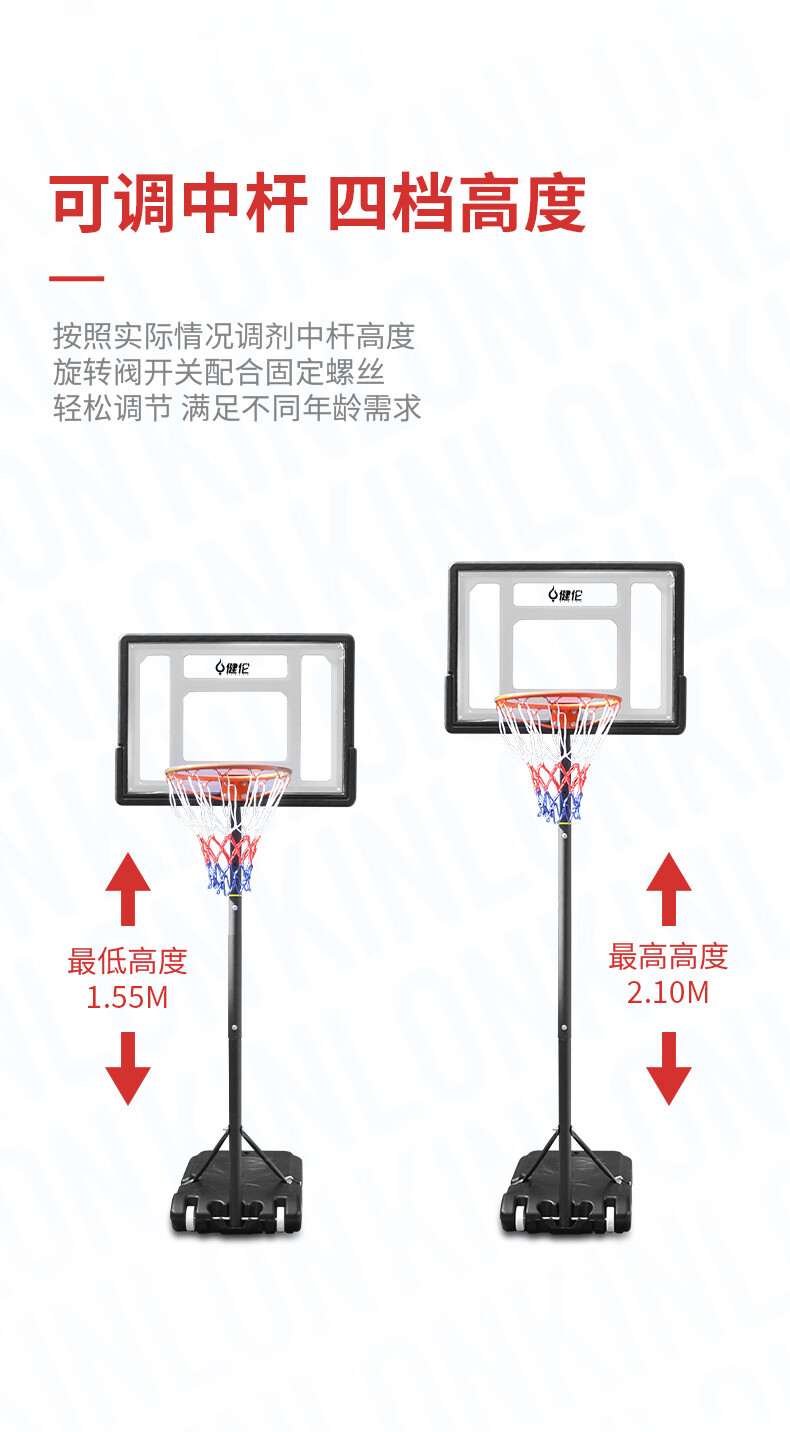 健伦儿童篮球架户外室外标准篮球框室内家用可移动升降 含篮球网 自营