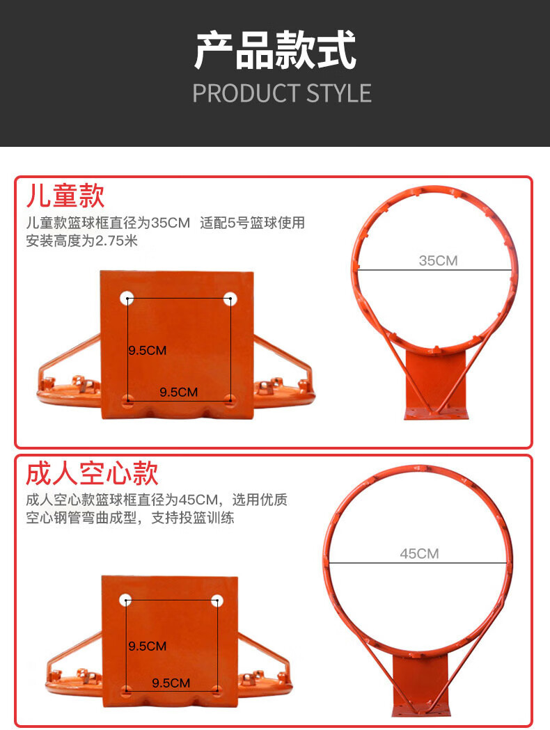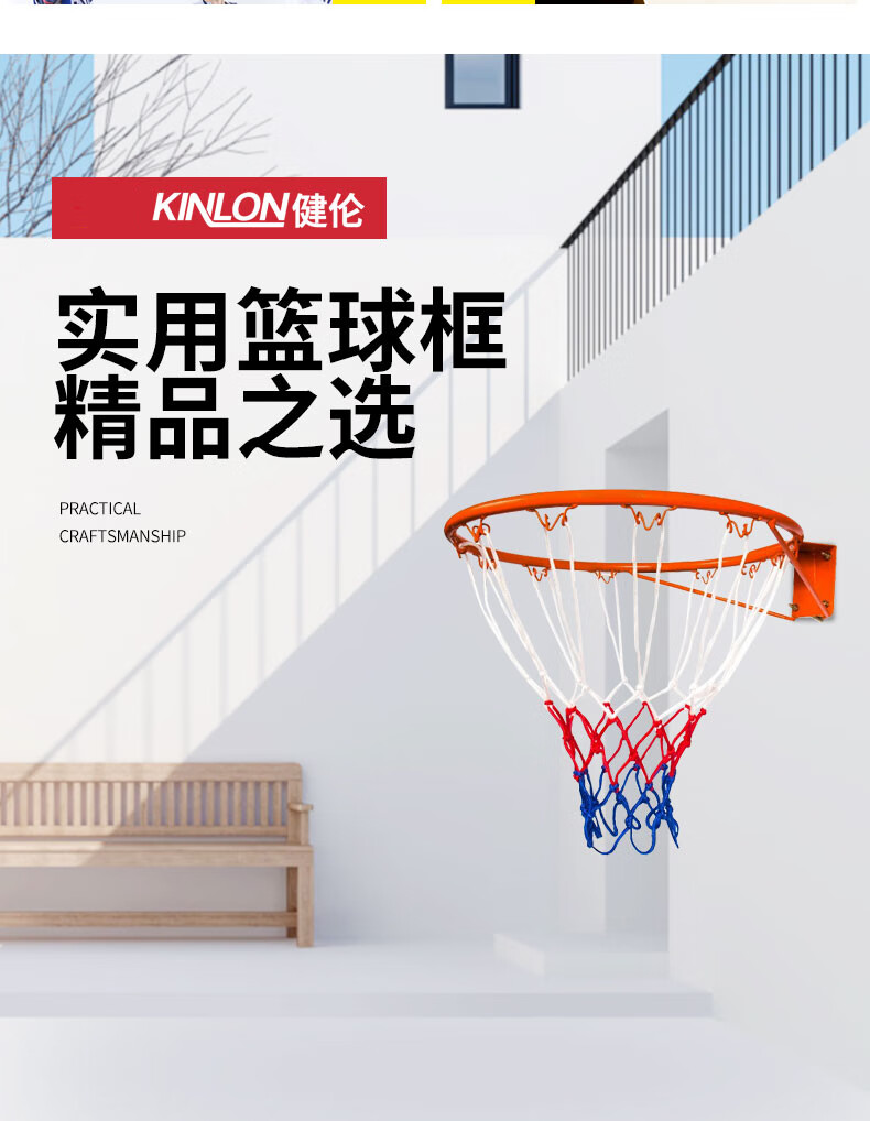 健伦(JEEANLEAN)JL-LQK05篮球框室内外墙挂壁式成人儿童通用双弹簧加厚实心筐45cm 自营