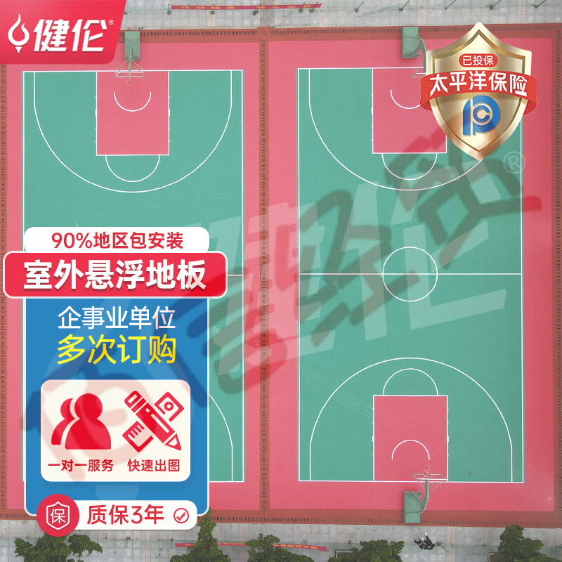 健伦篮球场地垫室外幼儿园悬浮地板户外匹克球运动悬浮拼装地板 自营