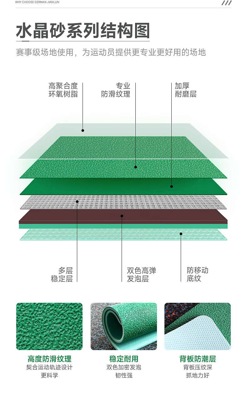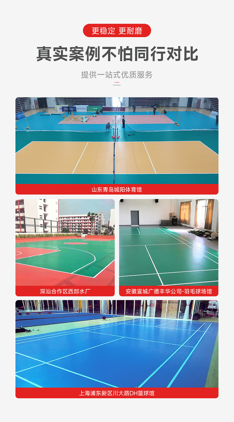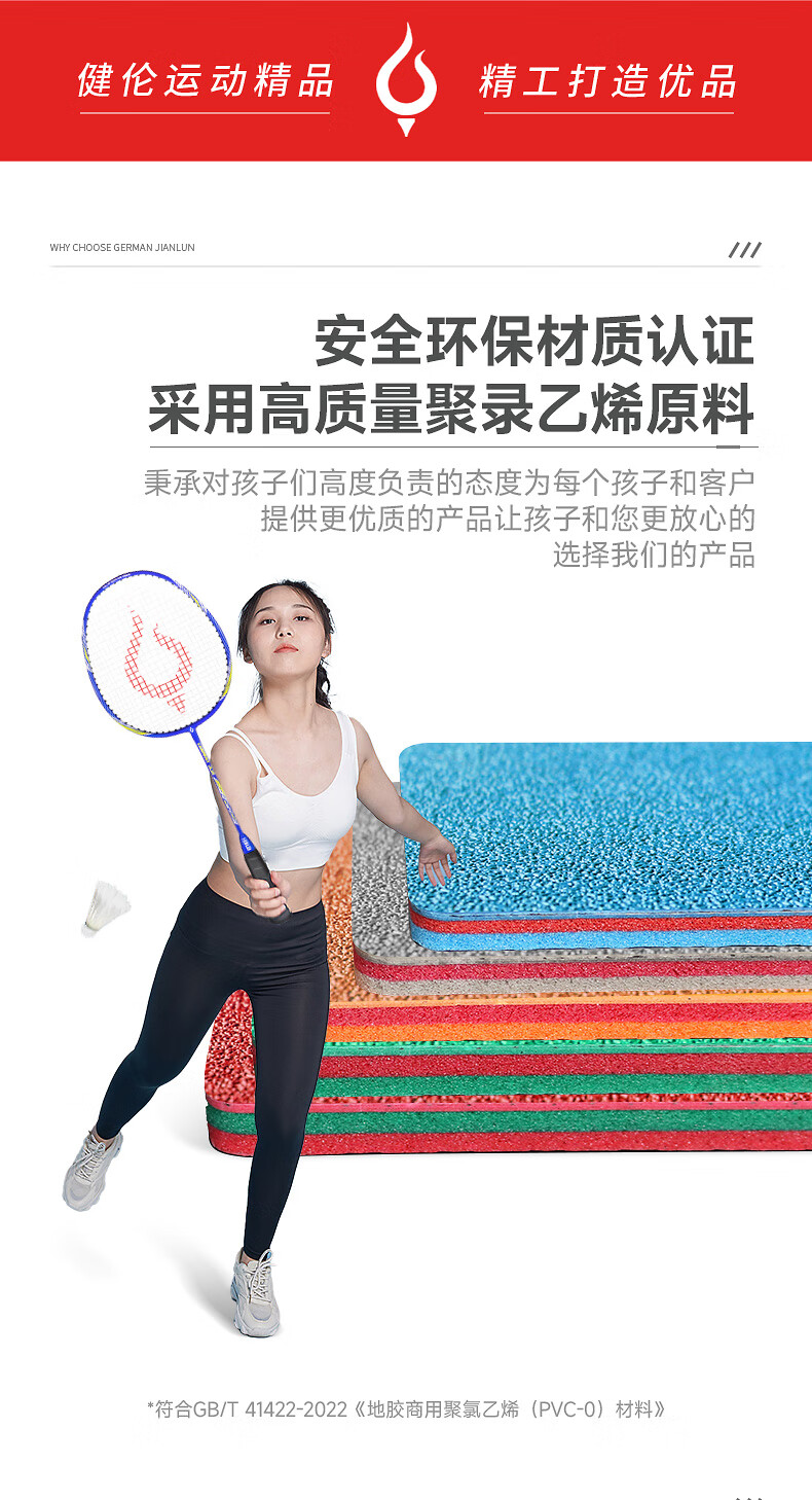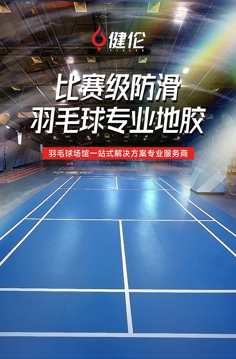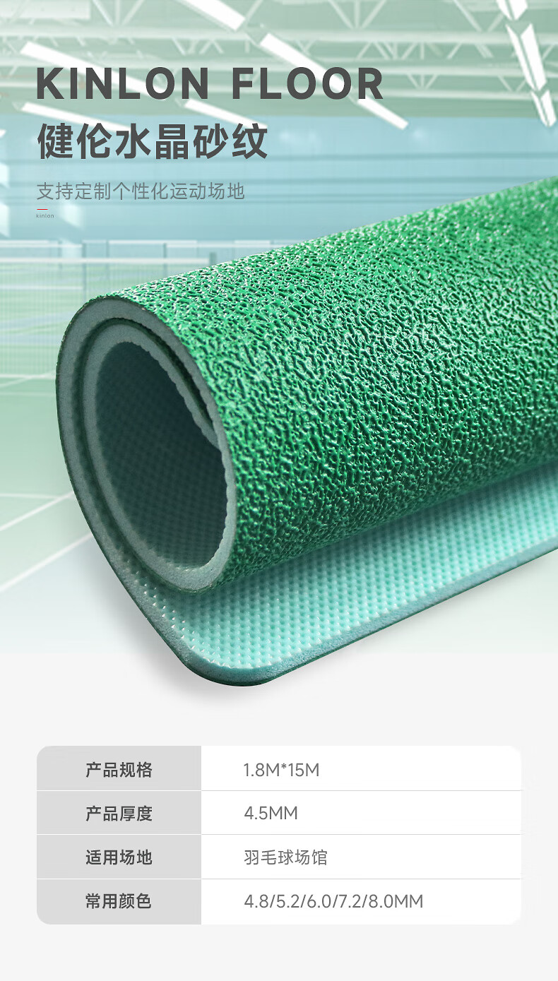 健伦羽毛球场地胶 专业室内场馆防滑塑胶地垫PVC水晶砂8.0mm 自营