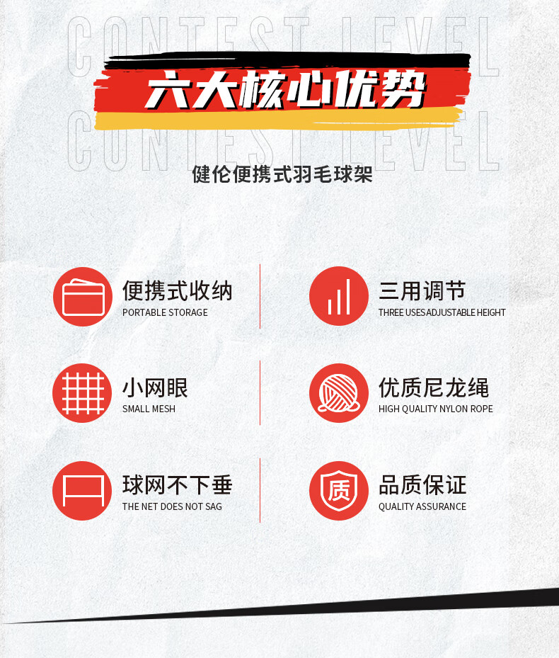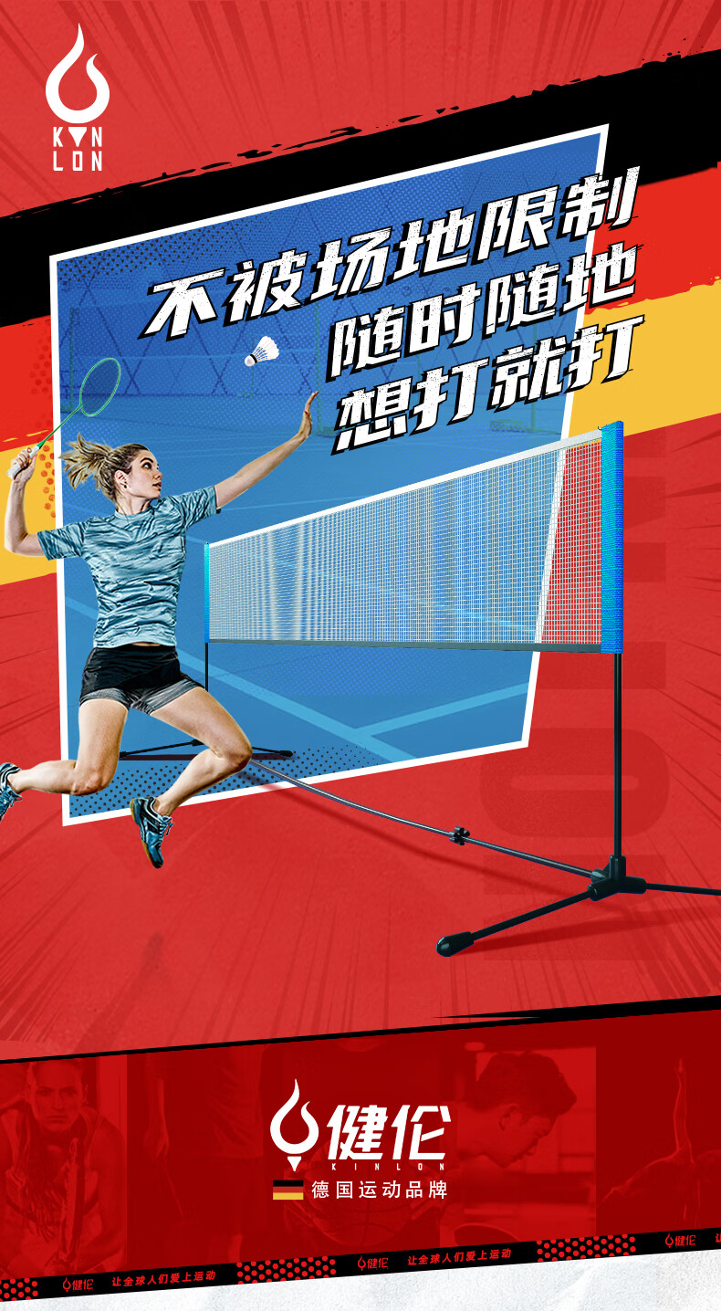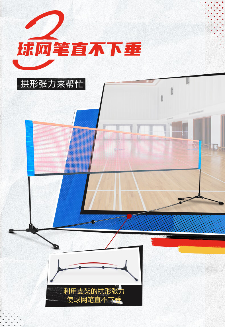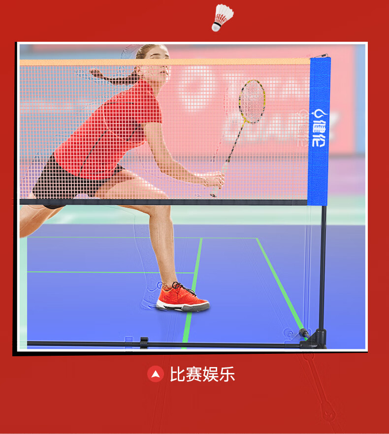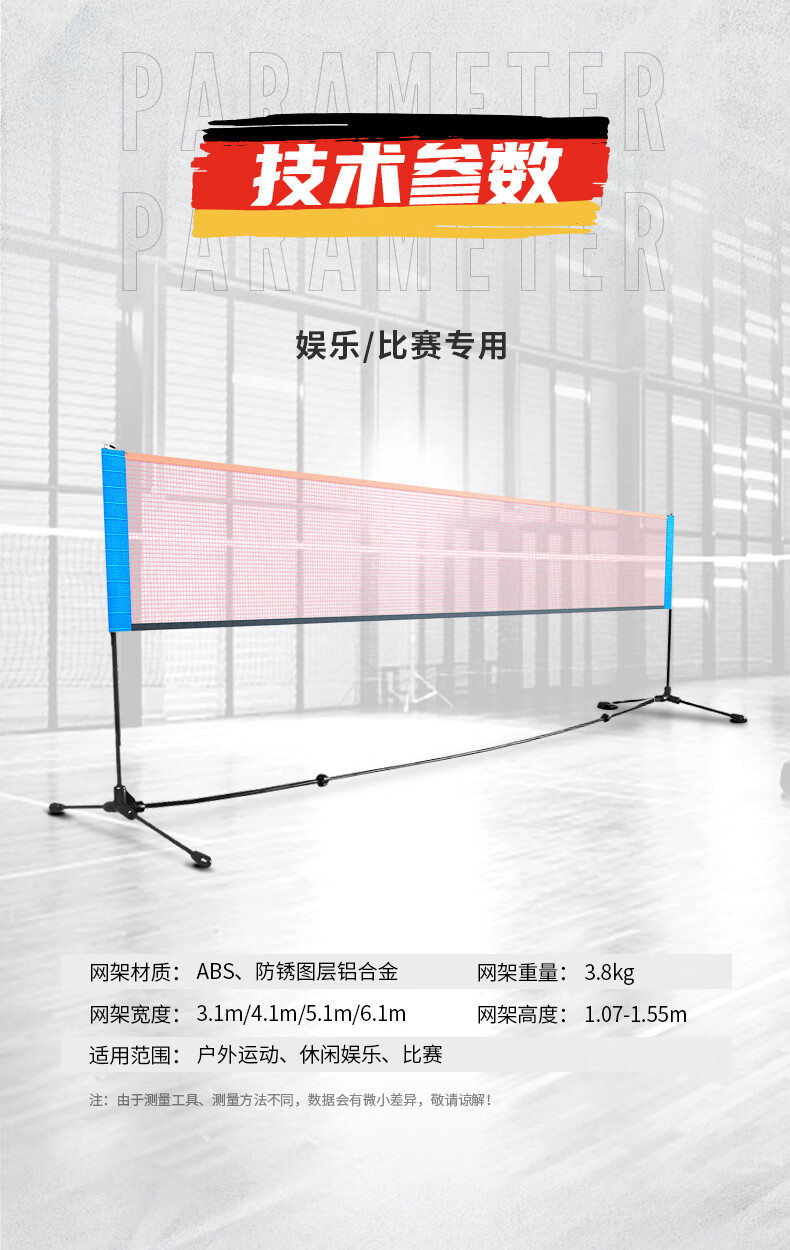 健伦JL-2906羽毛球网架移动羽毛球网架便携式4.1米含球网(3羽毛球) 自营