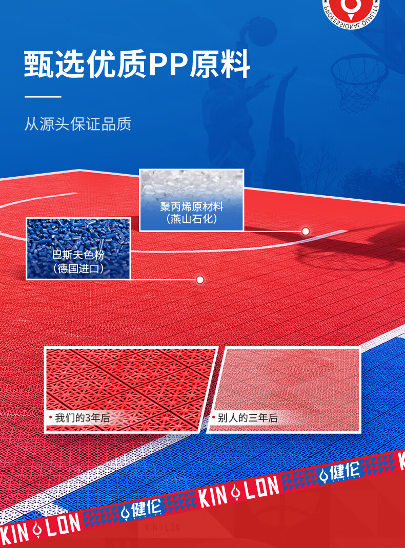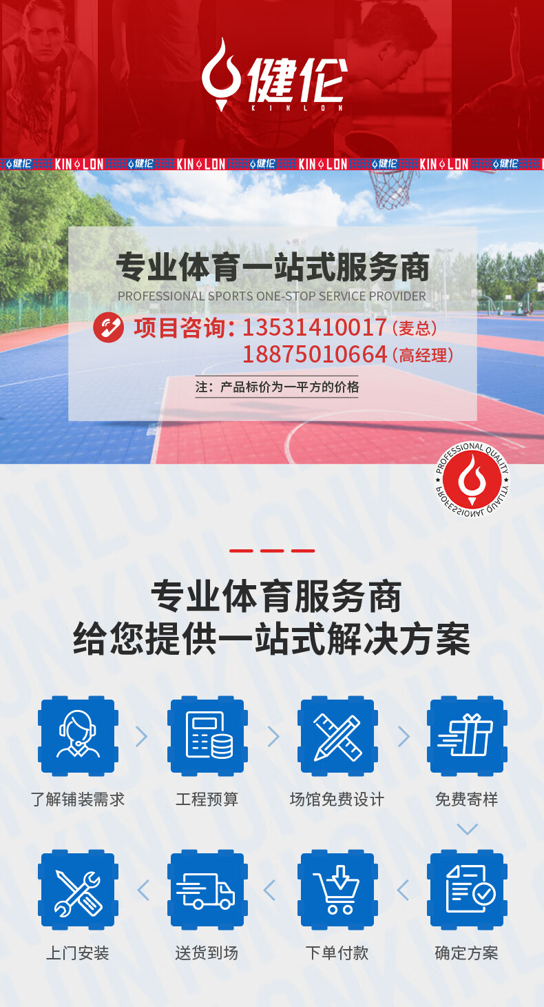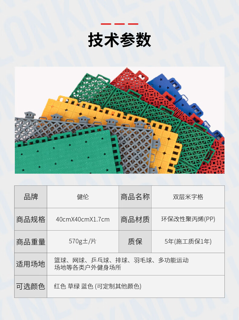 健伦室外悬浮地板篮球场地垫运动地板户外羽毛球场地胶 自营