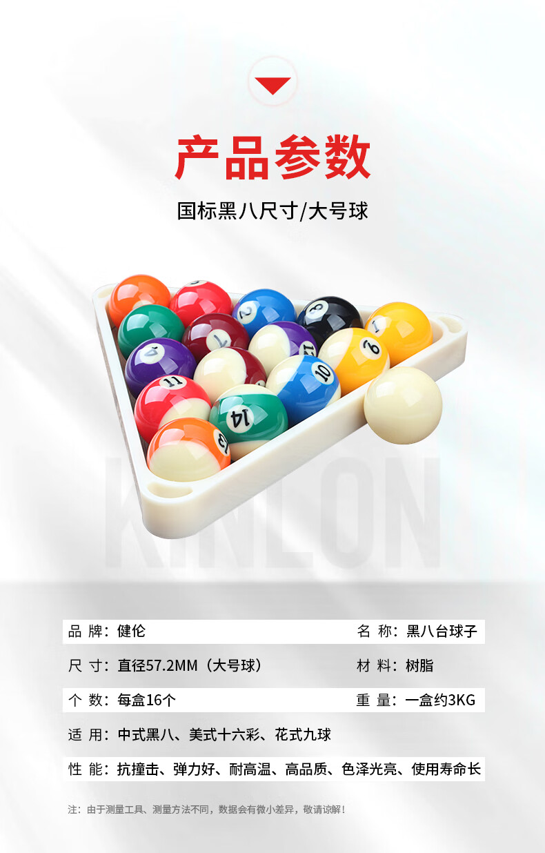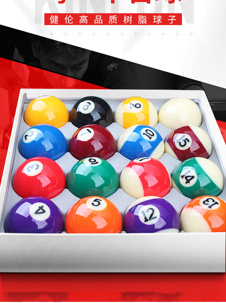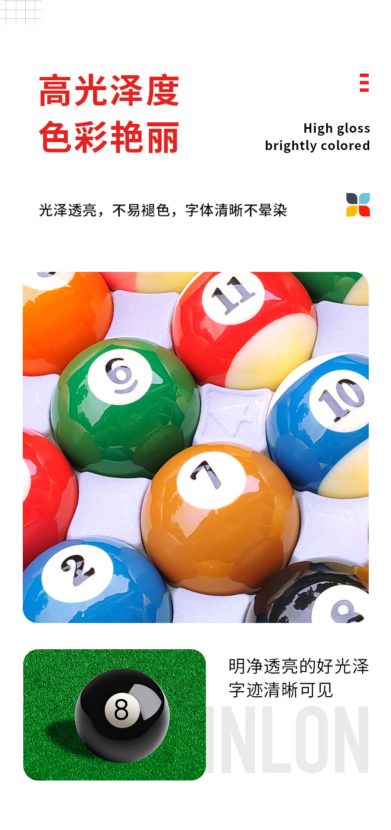 健伦台球桌球黑8台球子水晶球美式十六彩大号桌球树脂球57.2mmJL-TQ01 自营