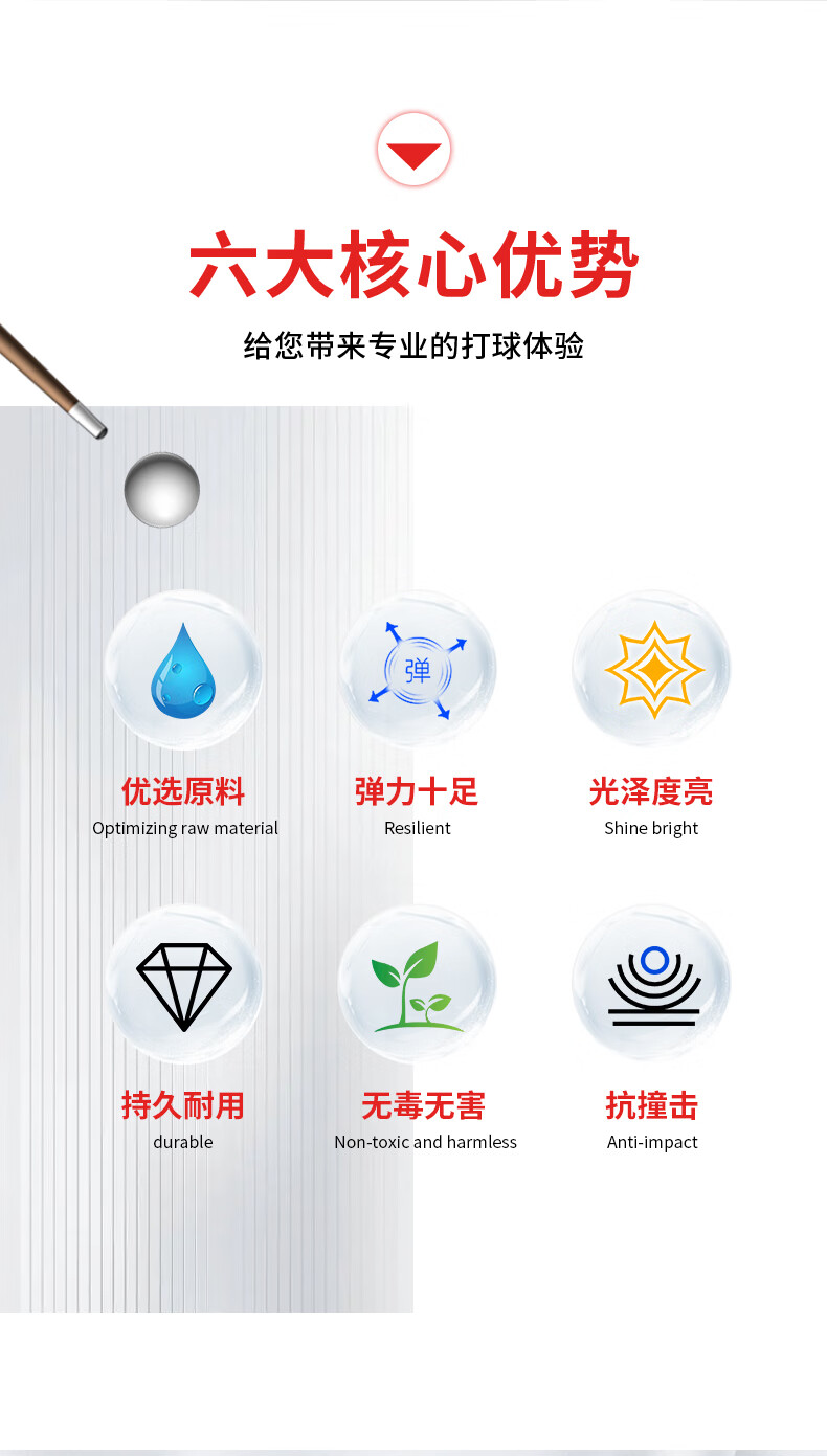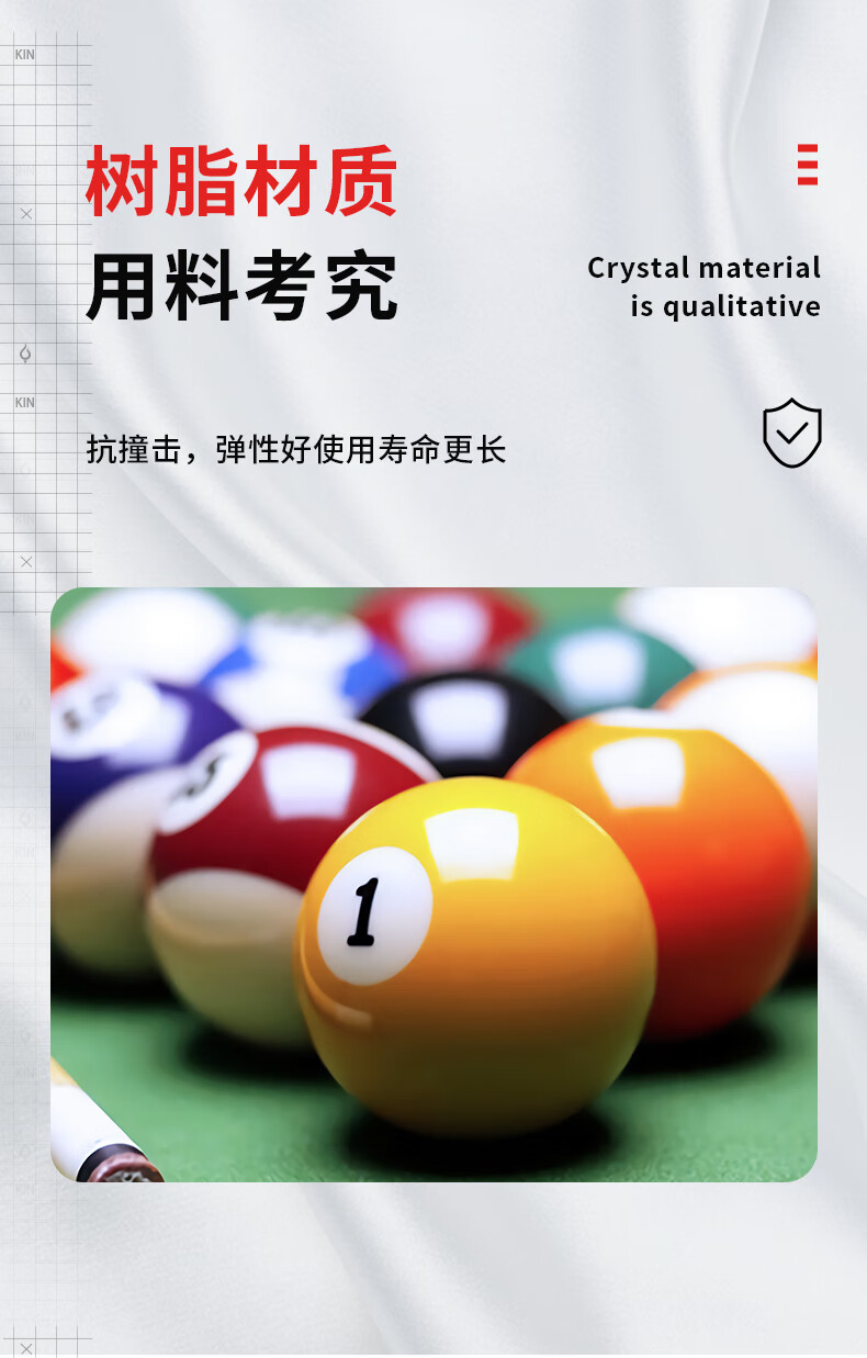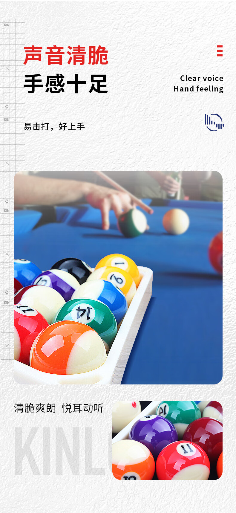 健伦台球桌球黑8台球子水晶球美式十六彩大号桌球树脂球57.2mmJL-TQ01 自营