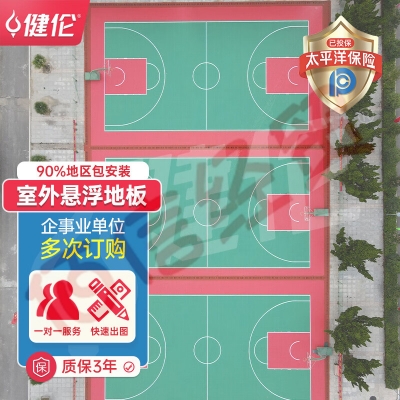 健伦篮球场悬浮地板户外轮滑悬浮式拼装地板室外悬浮地垫16宫格软连接 自营