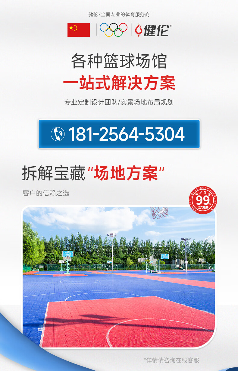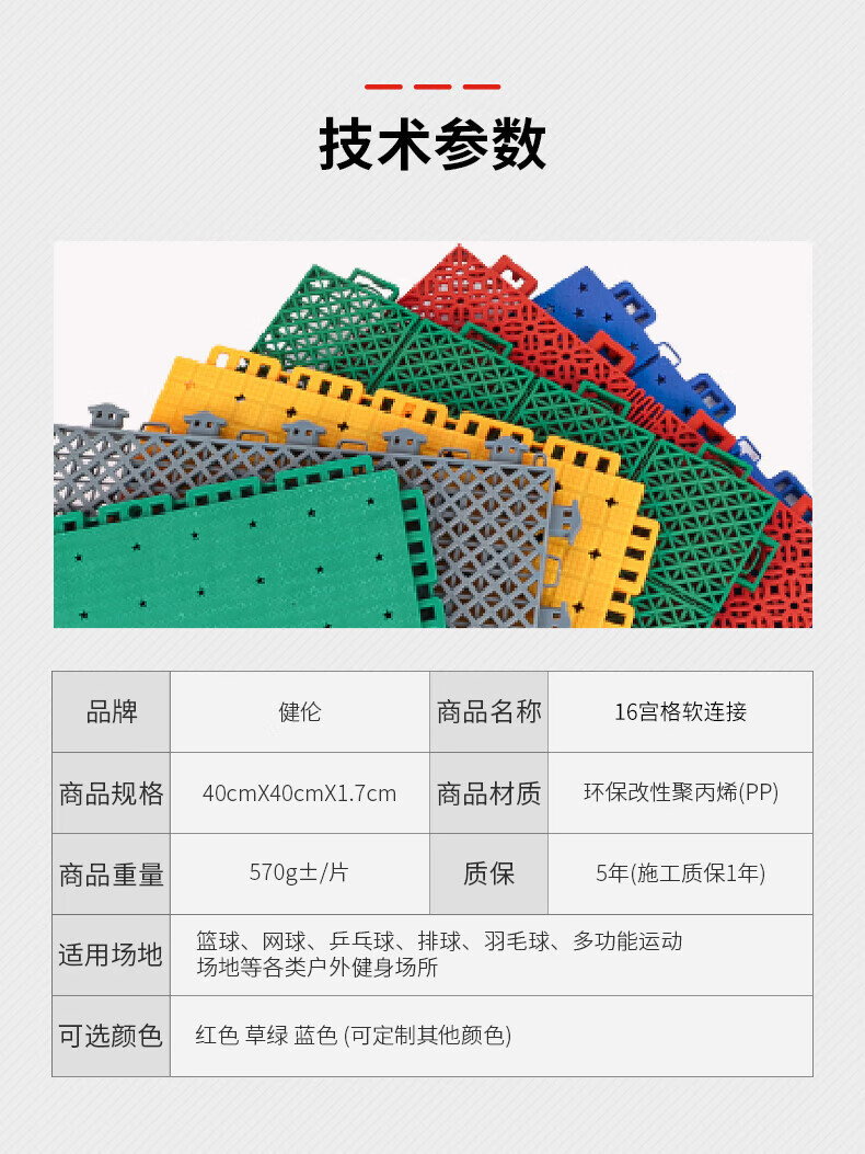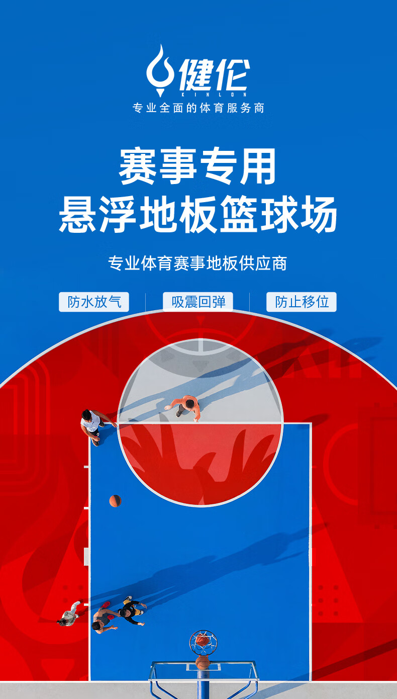 健伦悬浮地板室外篮球羽毛球场运动场地地胶(标价为1平米) 自营