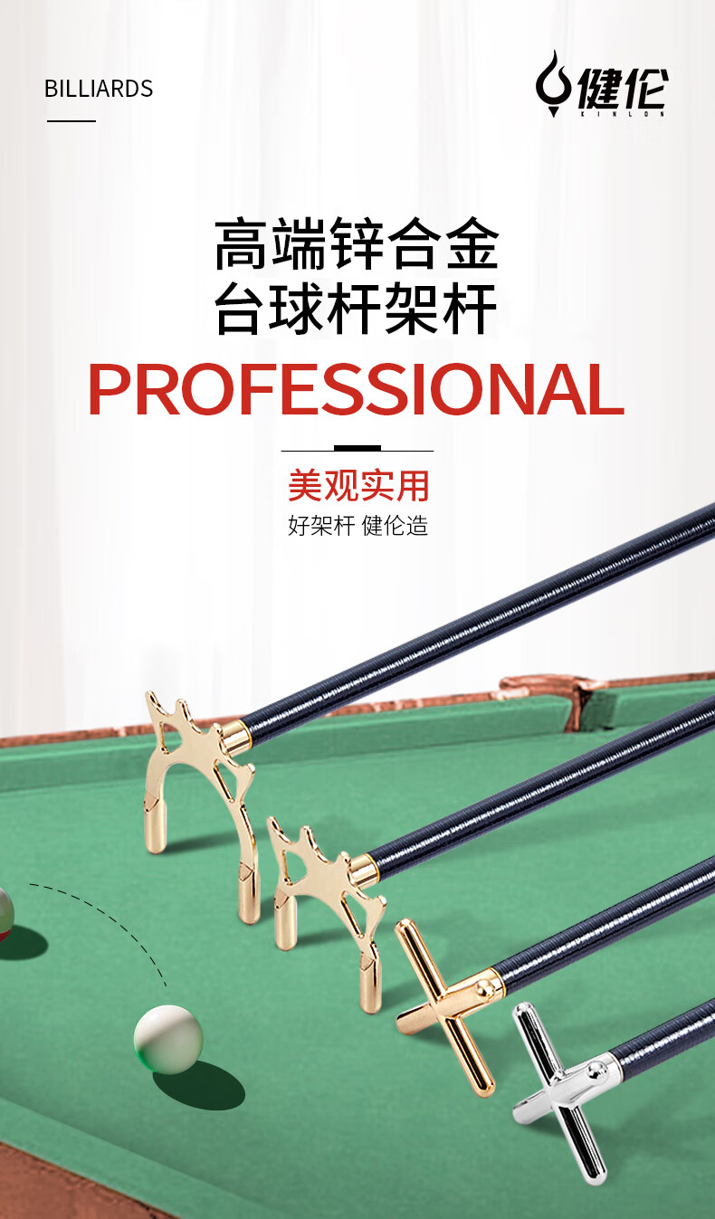 健伦(JEEANLEAN)黑八斯诺克台球架杆器辅助球杆 十字架杆头+架杆 自营