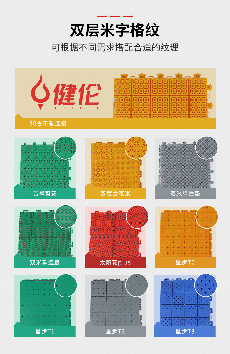 健伦(JEEANLEAN)悬浮地板 室外幼儿园学校运动场地专用双层小米字JLGDC1 自营