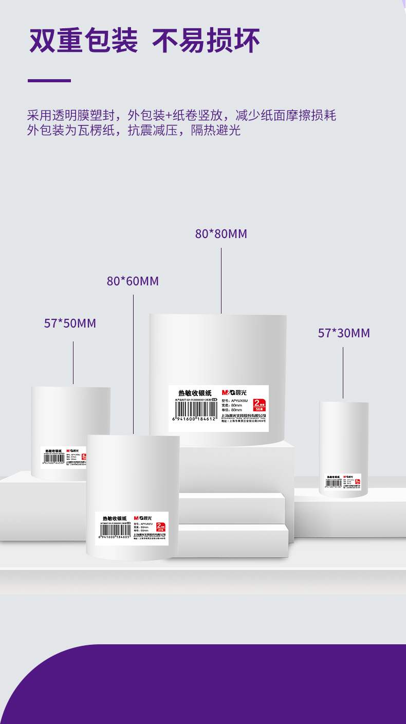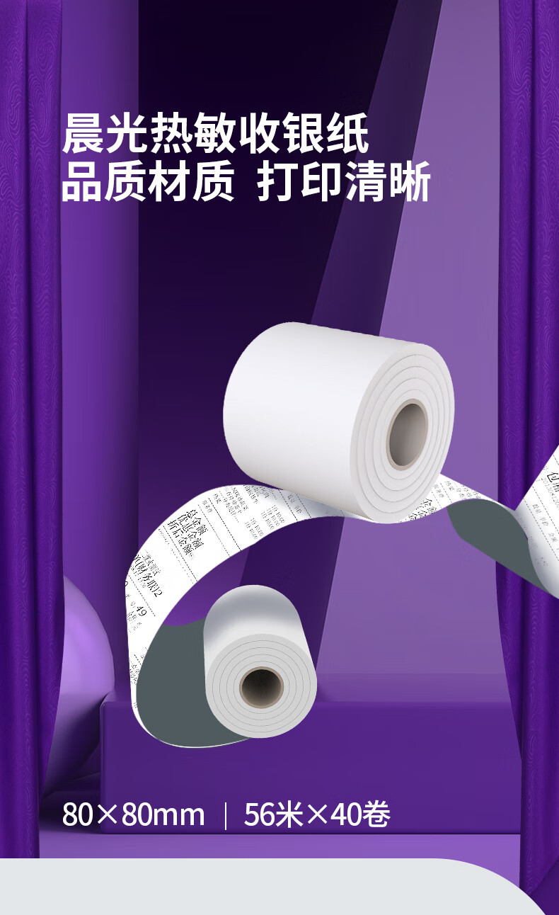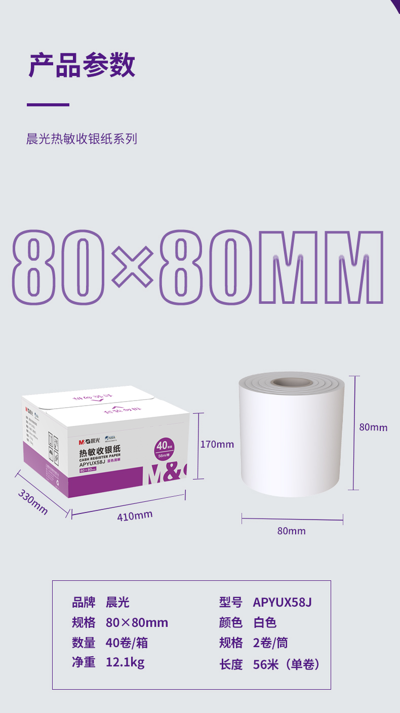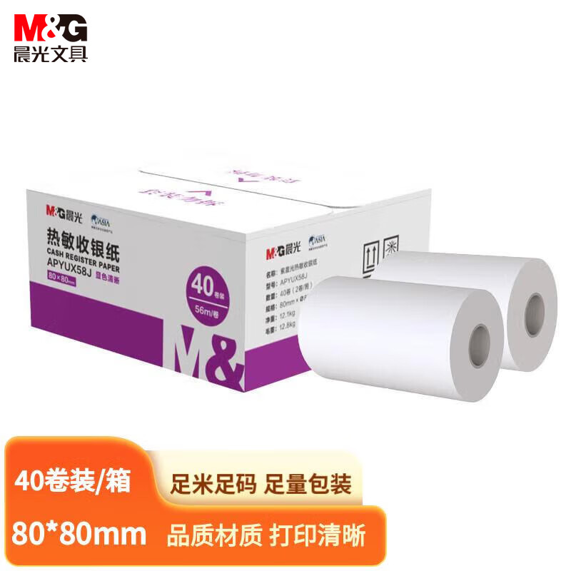 晨光(M&G)文具56m热敏收银纸 银联刷卡机打印纸 80*80mm移动点单热敏纸 40卷/箱APYUX58J 自营