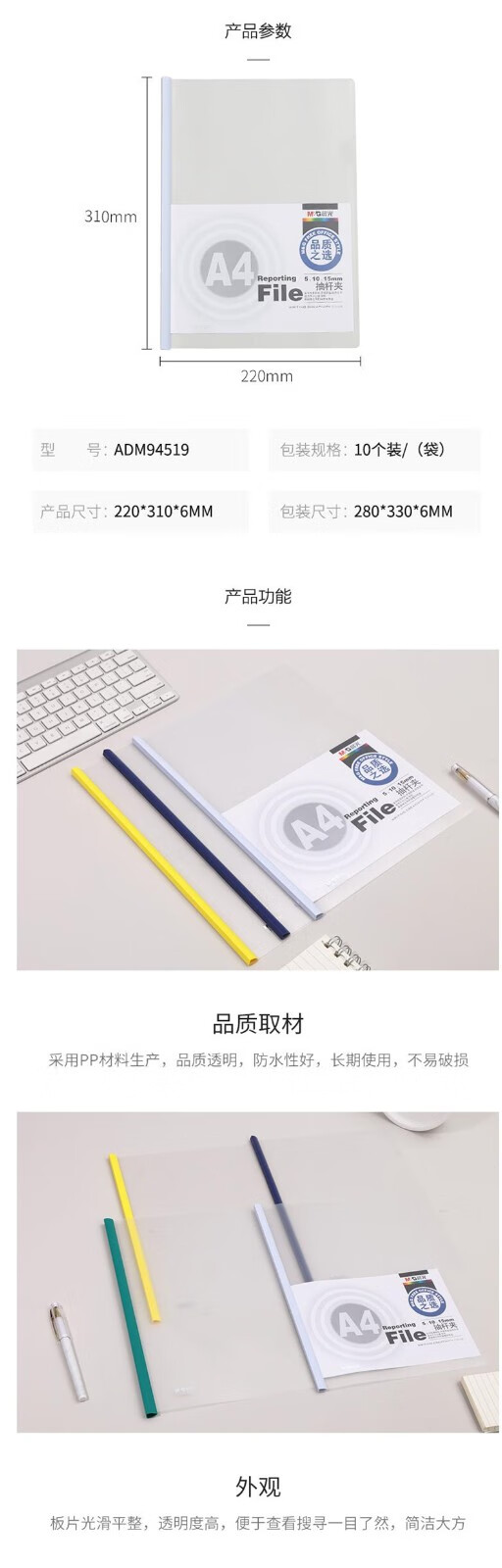 晨光(M&G) 抽杆夹办公报告夹 资料整理收纳文件夹拉杆夹学生考试收纳 ADMN4279抽杆夹25mm白色5个/包 自营