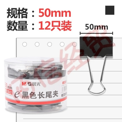 晨光(M&G)长尾夹大号夹子小号多功能书夹子试卷夹燕尾夹凤尾夹文件夹子文具票夹办公用品金属小夹子固定 黑色-50mm(ABS92732)12只 自营