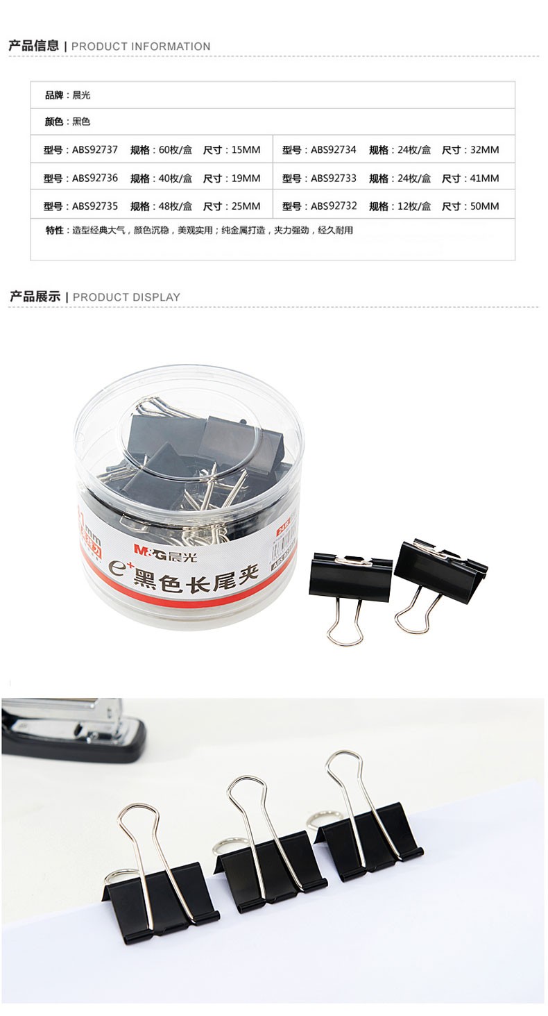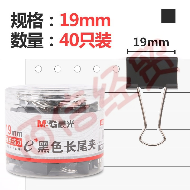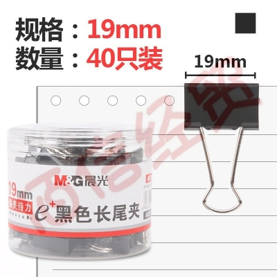 晨光(M&G)长尾夹大号夹子小号多功能书夹子试卷夹燕尾夹凤尾夹文件夹子文具票夹办公用品金属小夹子固定 黑色-19mm(ABS92736)40只 自营