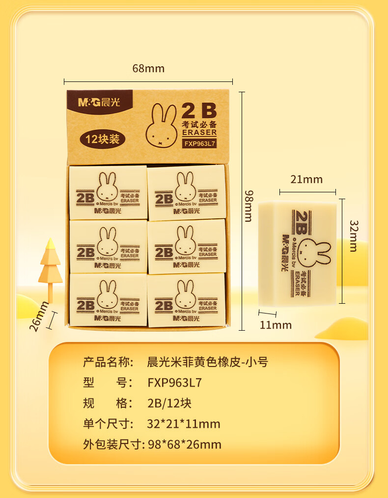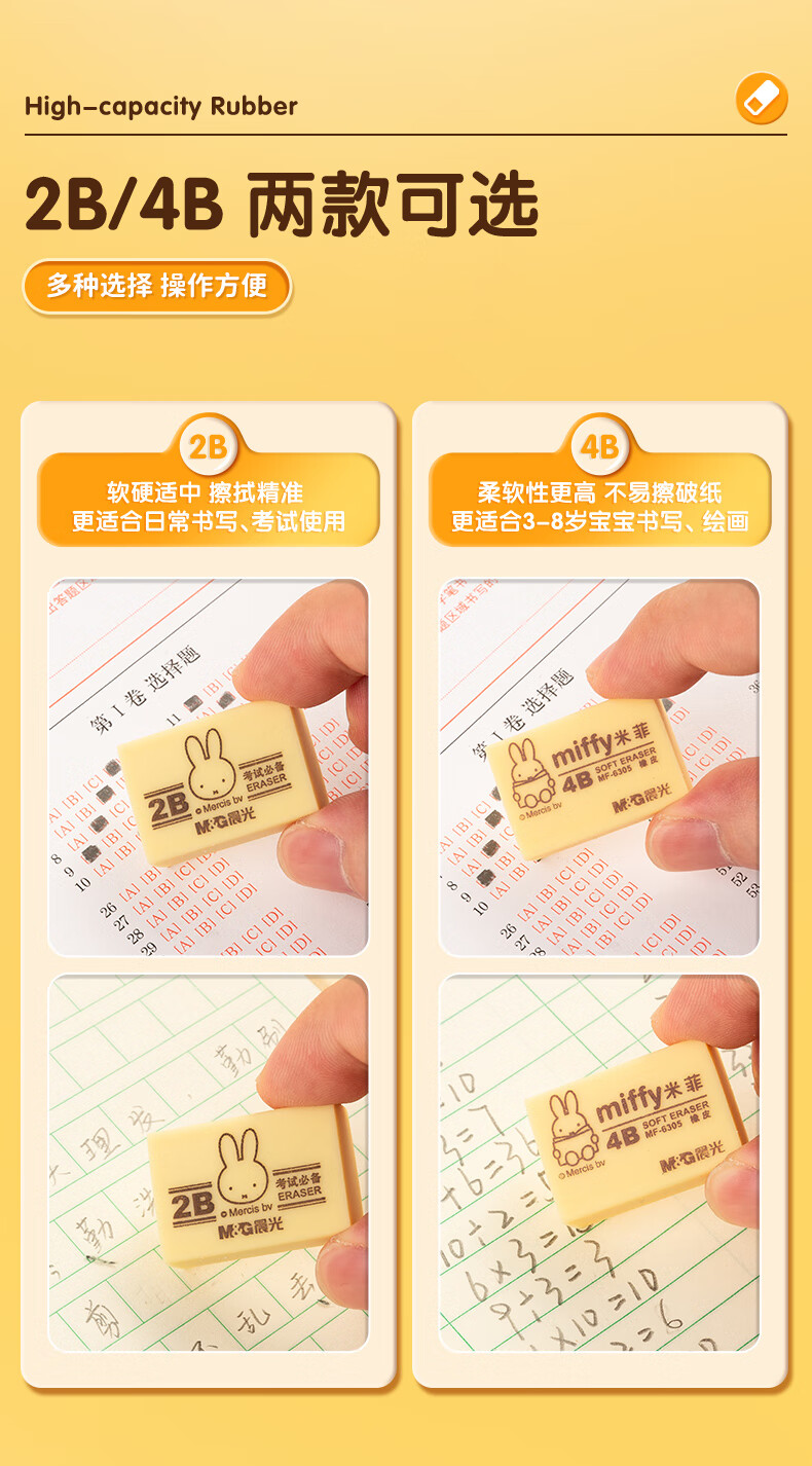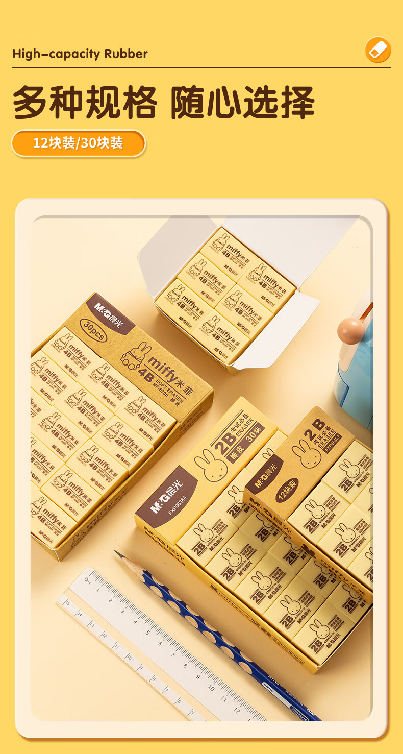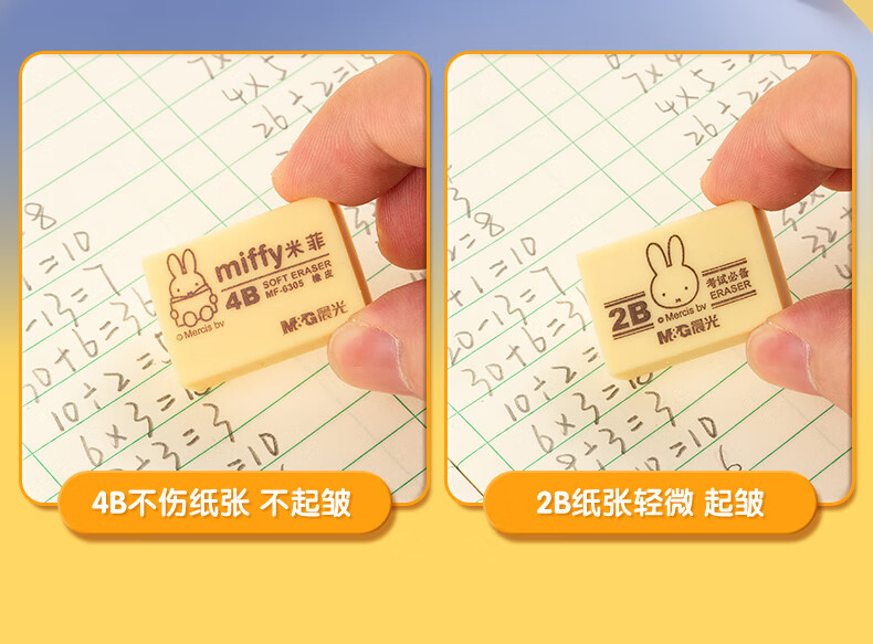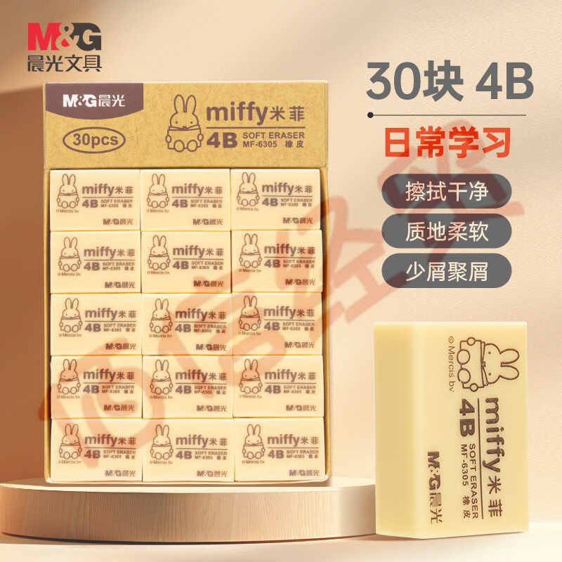 晨光(M&G)文具4B黄色小号橡皮 学生美术绘图考试橡皮擦 米菲系列可爱橡皮擦 30块/盒MF6305 自营
